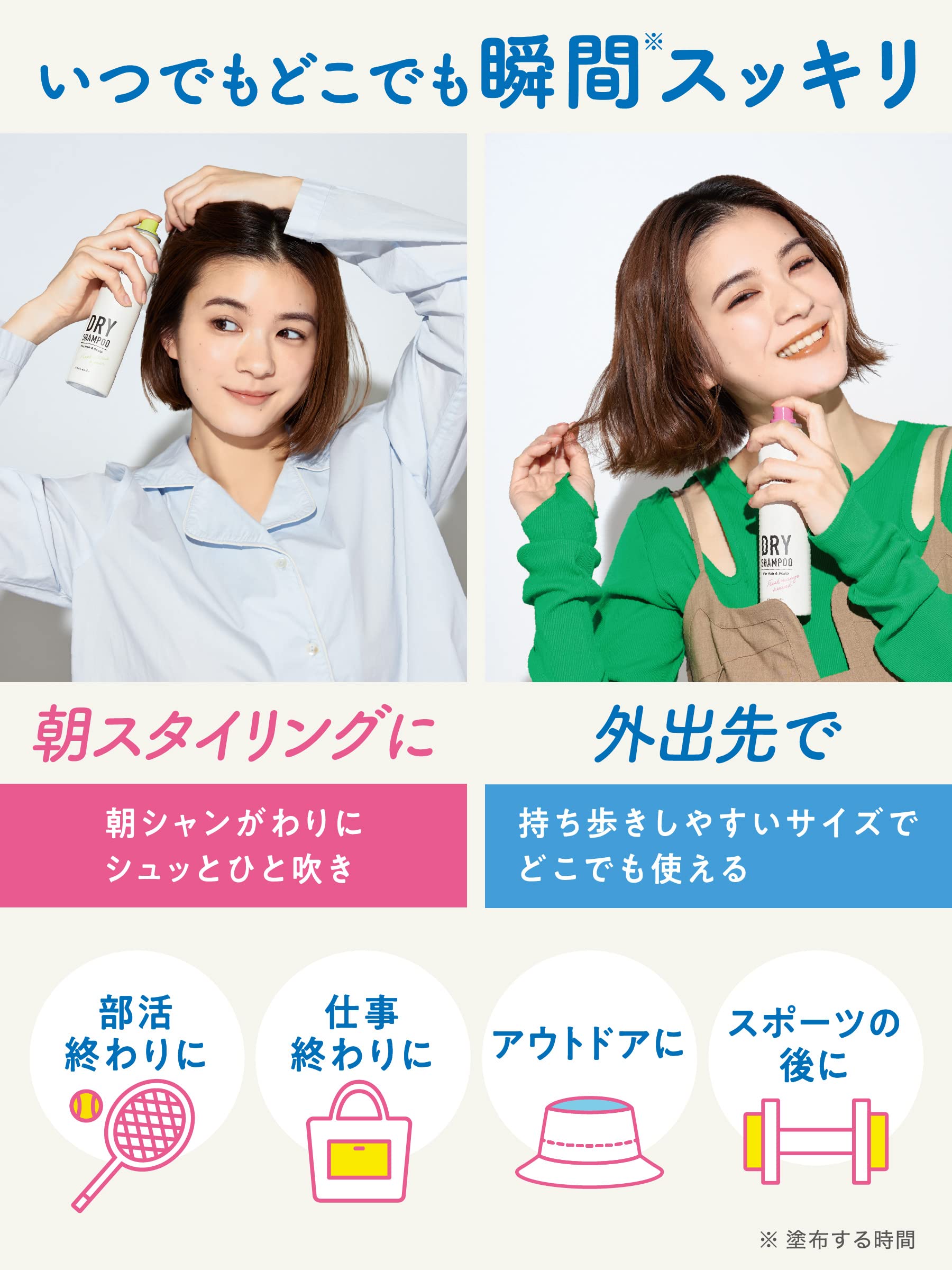 Diane(ダイアン) ミニオンドライシャンプー (水のいらないシャンプー) グレープフルーツ&ペパーミントの香りパーフェクトビューティー 95g。 商品紹介 洗い立てのようなすっきり感と爽やかな香りでリフレッシュ!汗や皮脂によるベタつきを抑え、サラサラふんわりスタイリングをキープします。 エアゾール独特のリフレッシュ感で瞬時に地肌を引き締め、気になるニオイを抑え、シャンプーをしたような爽やかさを実感。 グレープフルーツ&ペパーミントの香り。 夕方、髪のベタつきが気になる方に/スポーツ後や汗をかいた時のリフレッシュに/ツヤさらスタイリングを維持したい方へ 皮脂やベタつきを吸収する微粒子パウダー配合 ※パッケージデザイン等は予告なく変更されることがあります 原材料・成分 LPG、エタノール、オクテニルコハク酸デンプンAl 、ヤナギラン花/葉/茎エキス、o-シメン-5-オール、サリチル酸、セージ葉エキス、セイヨウハッカ葉エキス、ユーカリ葉エキス、レモングラス葉/茎エキス、ホホバ種子油、加水分解ケラチン、アルガニアスピノサ核油、マンゴー種子油、サンザシエキス、ナツメ果実エキス、リンゴ果実エキス、グレープフルーツ果実エキス、ライム果汁、オレンジ果汁、レモン果汁、セラミドEOP、セラミドNG、セラミドNP、セラミドAG、セラミドAP、クオタニウム-18、クオタニウム-33、コレステロール、香料、BG、ミリスチン酸イソプロピル、メントール、ピロ亜硫酸Na、水、PG、イソプロパノール、ジステアリルジモニウムクロリド、フェノキシエタノール 使用方法 容器を上下によく振ってからお使いください。 (1)髪から15~20cmくらいはなし、髪を小分けにしながら地肌・髪の根元に向かって適量をスプレーします。 (2)地肌全体にいきわたるように、指でなじませます。 手ぐし、またはブラシでヘアスタイルを整えてください。 安全警告 〈ご使用上の注意〉お肌に異常が生じていないかよく注意して使用してください。 目に入らないよう注意し、目に入ったときはこすらずにすぐに洗い流し、異物感が残る場合は眼科医にご相談ください。 顔面には使用しないでください。 換気のよい場所で使用し、吸入しないでください。 同じ箇所に連続して1秒以上噴射しないでください。 粉っぽさが気になるかたは、タオルなどでふきとってください。 頭皮に傷、はれもの、湿しん等、異常のある時は、使わないでください。 使用中や使用後、赤み、はれ、かゆみ、刺激、色抜け(白斑等)や黒ずみ等の異常が現れた時は、使用を中止し、皮ふ科専門医等へのご相談をおすすめします。 乳幼児の手の届かないところに置いてください。 床についた場合はすべりやすくなるのですぐにふきとってください。 洗い立てのようなすっきり感と爽やかな香りでリフレッシュ!汗や皮脂によるベタつきを抑え、サラサラふんわりスタイリングをキープします。 エアゾール独特のリフレッシュ感で瞬時に地肌を引き締め、気になるニオイを抑え、シャンプーをしたような爽やかさを実感。 グレープフルーツ&ペパーミントの香り。 夕方、髪のベタつきが気になる方に/スポーツ後や汗をかいた時のリフレッシュに/ツヤさらスタイリングを維持したい方へ。 皮脂やベタつきを吸収する微粒子パウダー配合。 ※パッケージデザイン等は予告なく変更されることがあります。 S000-K1009