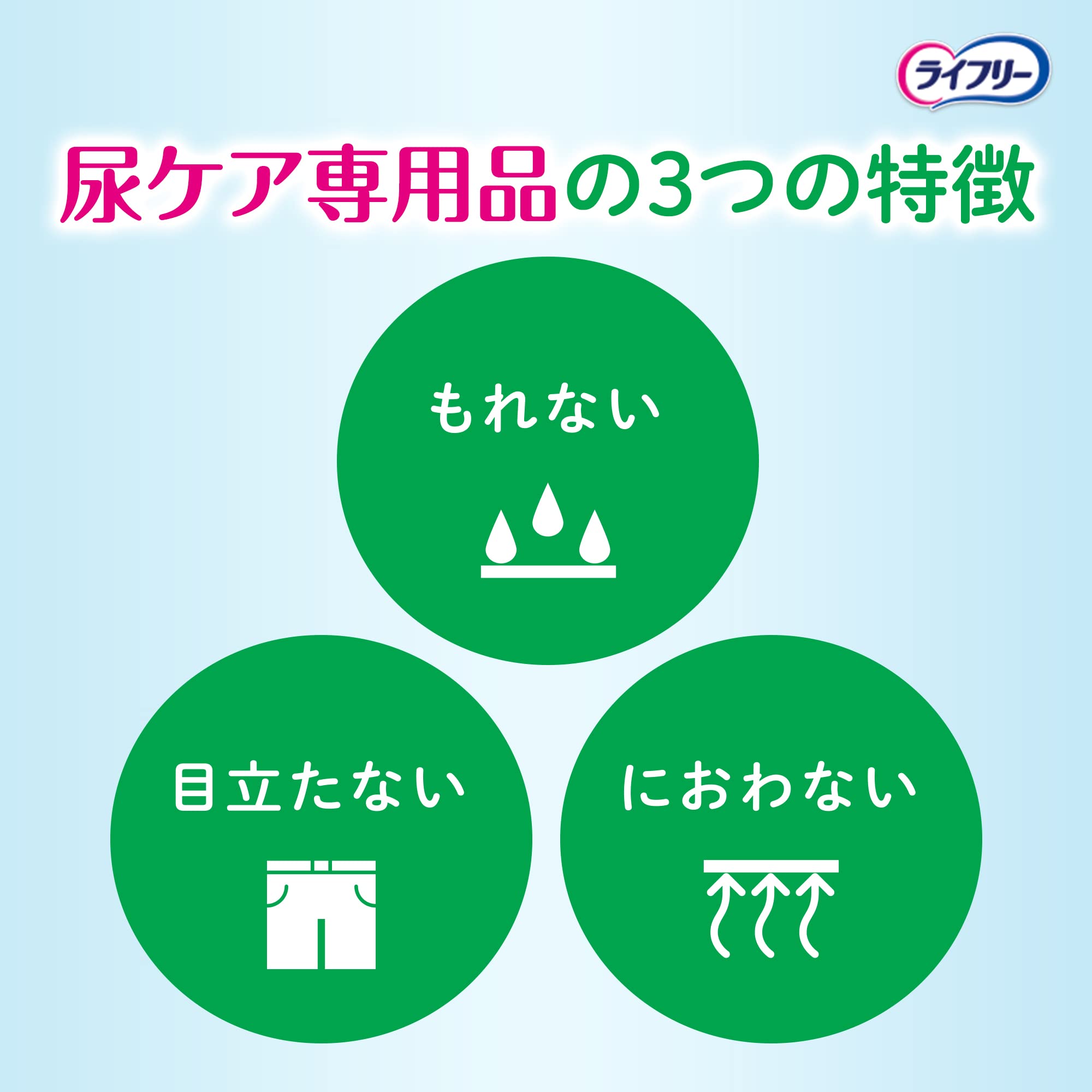 ライフリー 【尿もれパッド 270㏄】 さわやかパッド 女性用 特に多い時も長時間安心用 16枚 34cm (ドッとモレに)。 立体ギャザーがもしもの横モレを防いで、特に多くてもモレ安心! 水分ジェル化ポリマー配合の真ん中ふっくら吸収体が、ヨレずにフィット! ニオイを閉じ込める消臭ポリマー※配合※アンモニアについての消臭効果がみられます。 <ナプキン型尿ケアパッド>ダブル吸収、モレ心配なし。 センタ-ステッチがふくらみを押さえながら、くり返しの多量尿をキャッチ。 吸収体のサイドゾ-ンと立体ギャザ-が、もしもの横モレを防いで配なし。 吸収量:270cc長さ:34cm。 商品サイズ(幅×奥行×高さ):206mm×114mm×230mm。 内容量:16枚パッケ-ジのデザイン変更に伴い、掲載画像とは異なったデザインの商品が届く場合がございます。 あらかじめご了承ください。 原産国:日本。 S000-K9999