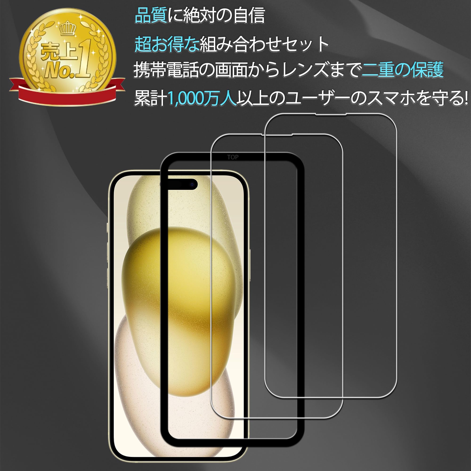 KPNS iPhone15 / iPhone16 用 ガラスフィルム ガイド枠付き日本素材製 強化ガラス 強化ガラス カバー アイフォン15 / 16 保護フィルム 【2枚セット】 10/08更新 | karuamiruku