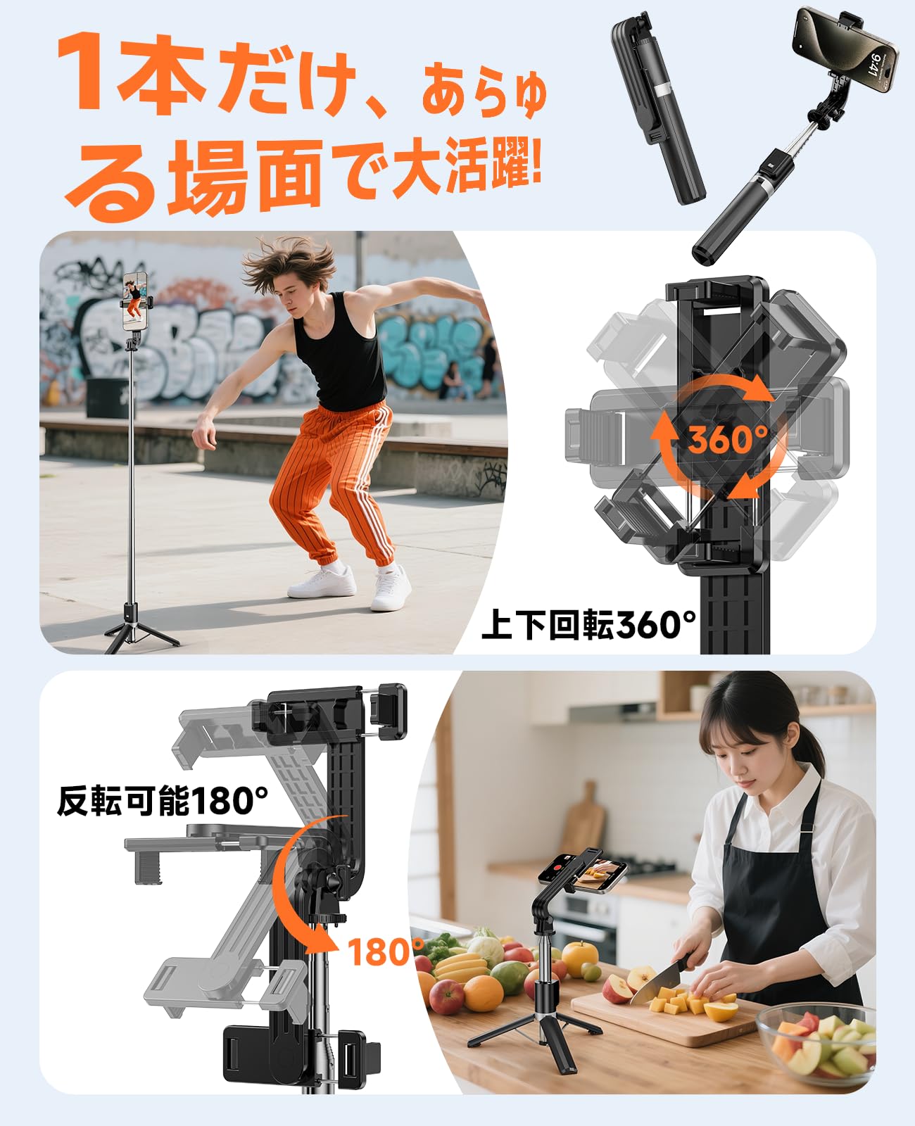 自撮り棒【新登場・三脚安定】 スマホスタンド 三脚 じどり棒 軽量200g コンパクト 伸縮式(20-100cm) 長い 360°自由調整 9段階伸縮 Bluetooth5.2リモコン (10m遠隔操作対応) 折りたたみ アンドロイド iphone 対応 携帯スタンド セルカ棒 セルフィー 旅行/動画撮影/生放送/Vlogに最適 日本語説明書付属 Black。 【超軽量200g&コンパクト設計】2025最新モデル登場!最軽量わずか200gの超軽量設計で、持ち運びに最適。 9段階伸縮式で最大100cmまで延長でき、折りたたみ時はたった20cmとコンパクト。 500mlペットボトルより小さく、カバンやポケットにもすっぽり収まります。 旅行やVlog、セルフィーや日常撮影まで、いつでもどこでも活躍するスマホスタンド一体型自撮り棒です。 【三脚一体型&抜群の安定性】手持ちと据え置きの両方に対応した三脚一体型の設計。 まさに次世代の自撮り棒。 脚部には滑り止めゴムを採用し、傘型にしっかり広がる構造で屋外の不安定な地面や風のある環境でもプロのような安定した画質で撮影できるのが自慢です。 9段階伸縮のアルミ合金製ロッドは耐久性も高く、長期間の使用でも安心。 セルフィーや風景写真、動画撮影など様々な用途に安定した撮影が可能です。 【Bluetooth5.2対応10mリモコン】最先端Bluetooth5.2技術を搭載し、わずか3秒で瞬時接続を実現。 ワンタップ操作で遅延ゼロの快適な撮影体験をお約束します!驚異的な10mの遠隔操作が可能で、自撮りはもちろん集合写真や動画撮影など、あらゆるシーンで大活躍。 一度接続すれば自動でペアリングを記憶するため、面倒な設定は不要です。 充電不要のリモコン(予備電池付属)で、約20,000回+の撮影が可能。 leacco自撮り棒は、日常使いから旅行まで欠かせないアイテムとなっています。 【フリーアングル調整&多シーン対応】スマホホルダー部分は360°回転可能で上下角度も自由に調整でき、縦/横位置の切り替えが簡単に行えます。 精密な角度微調整機能により、Vlog 撮影やライブ配信時に理想的なアングルを簡単に設定できます。 手持ち撮影はもちろん、卓上設置や三脚据え置きなど、さまざまなシーンに対応しています。 さらに59-91mmの幅広いスマホサイズに対応し、ホルダー内側のゴムクッションにより、スマホをしっかり固定しながらも傷つける心配がありません。 S000-K9999