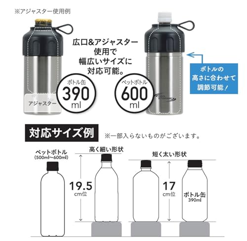パール金属 保冷 ペットボトル カバー ホルダー クーラー 500ml 600ml ボトル缶 390ml 兼用 ステンレス製 真空二重構造 真空断熱 サテン クールストレージ ボトル缶も使える D-6781。 製品サイズ:(約)幅11×奥行9×高さ18.5cm。 製品重量:(約)0.32kg。 品名:ペットボトルカバー、素材・材質:本体/ステンレス鋼(外面 D-6780・D-6782/ポリエステル粉体塗装)、(外面 D-6781/アクリル樹脂塗装)、カバー・アジャスター/ポリプロピレン(耐熱温度100度)、ハンドル/熱可塑性エラストマー(耐熱温度100度)。 ※ペットボトル500-600ml・ボトル缶390ml用。 S000-K9999