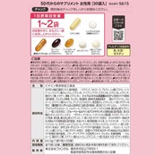 ファンケル (FANCL) 50代からのサプリメント女性用 15~30日分 (30袋) 年代 サプリ (ビタミンC/カルシウム/アスタキサンチン) 個包装。 【栄養機能食品】【元気と美容を応援】サラサラ対策をしたい世代にあわせ、より成分にこだわったサプリメントをワンパックにしました。 【一歩進んだ健康対策のために】大人の女性の美しさと健康にぴったりな成分がしっかり働きを発揮できるよう飲み合わせに配慮し効率良く働くように、バランスを考えて設計しています。 【1日の目安】1~2袋(1袋:7粒)【内容量】15~30日分 (30袋)【1袋中】ビタミンB&C、トリプルミネラル&乳酸菌&カロテン、還元型コエンザイムQ10、 ブルーベリー&ルテイン&アスタキサンチン、ナットウキナーゼ&ビタミンE&ヒハツ、大豆イソフラボン&コラーゲン&カルシウム、HTCコラーゲン 【アレルギー物質】乳、大豆、ゼラチン【ご注意】※妊娠・授乳中の方、お子様はお召し上がりにならないでください。 ※本品により、尿が黄色くなることがありますが、これはビタミンB2による一時的なものですので心配はいりません。 ※イソフラボンを含む健康食品等との併用を避け、過剰摂取にご注意ください。 S000-K1010