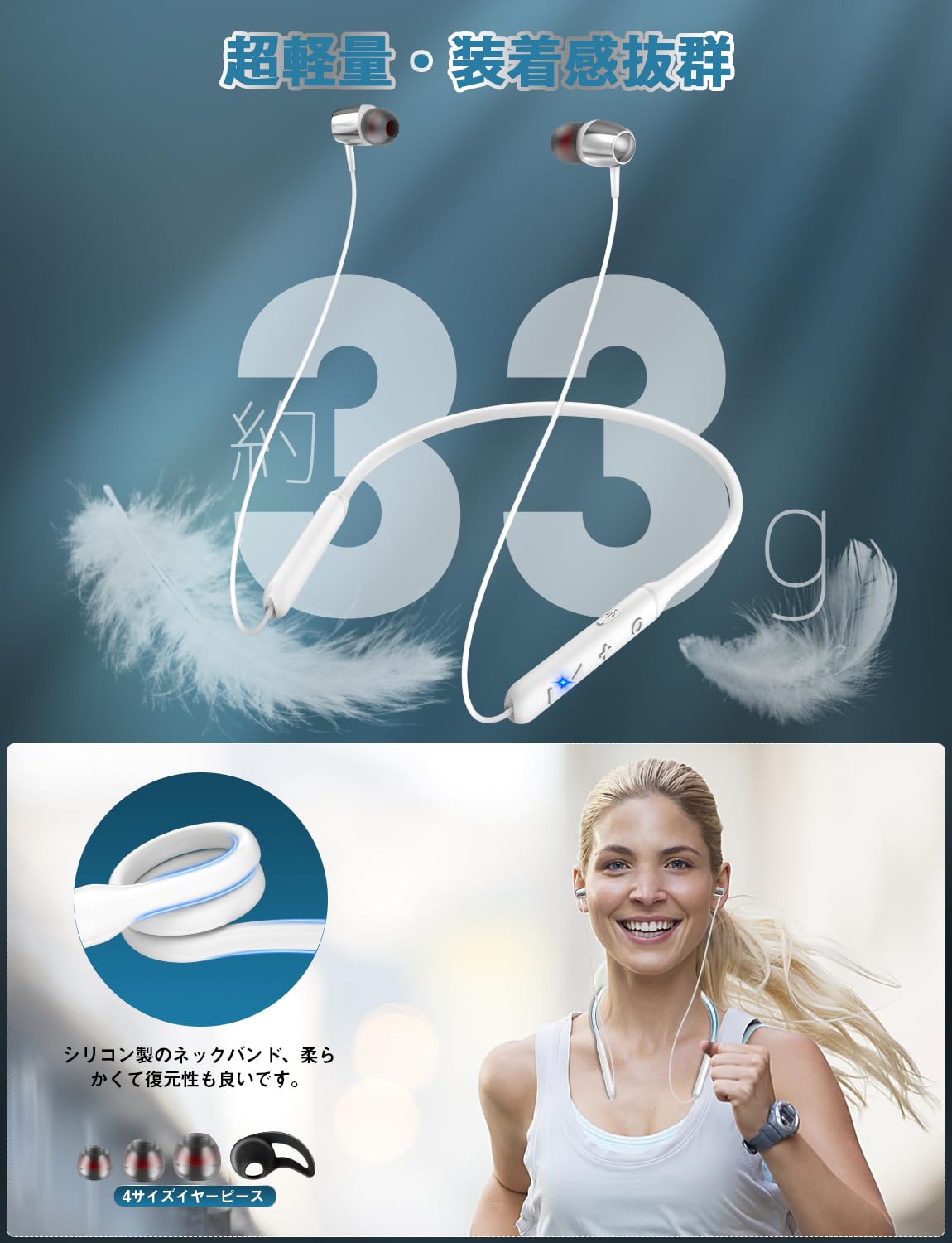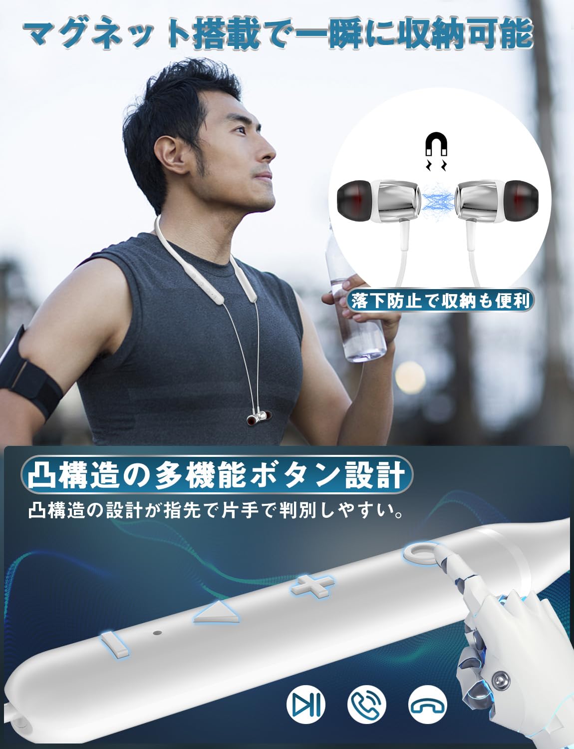 【業界トップ Bluetooth5.3+38時間連続再生】イヤホン ネックバンド型 ワイヤレス CVC8.0ノイズキャンセリング スポーツ マルチポイント対応 Type-C急速充電 Hi-Fi音質 マグネット搭載 自動ペアリング ハンズフリー通話 IPX7防水 軽量 ランニング 在宅勤務/テレワーク/skype/ビジネス/LINEチャット プレゼントなどに適用(ホワイト) 10/08更新 | karuamiruku