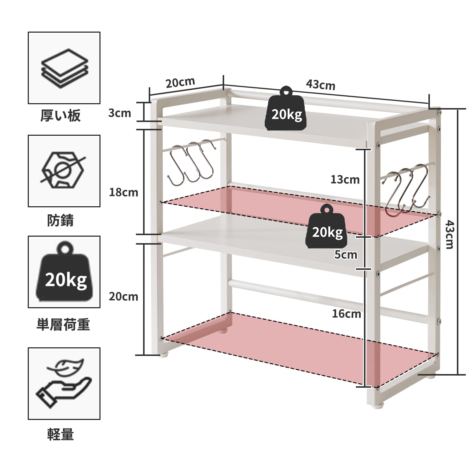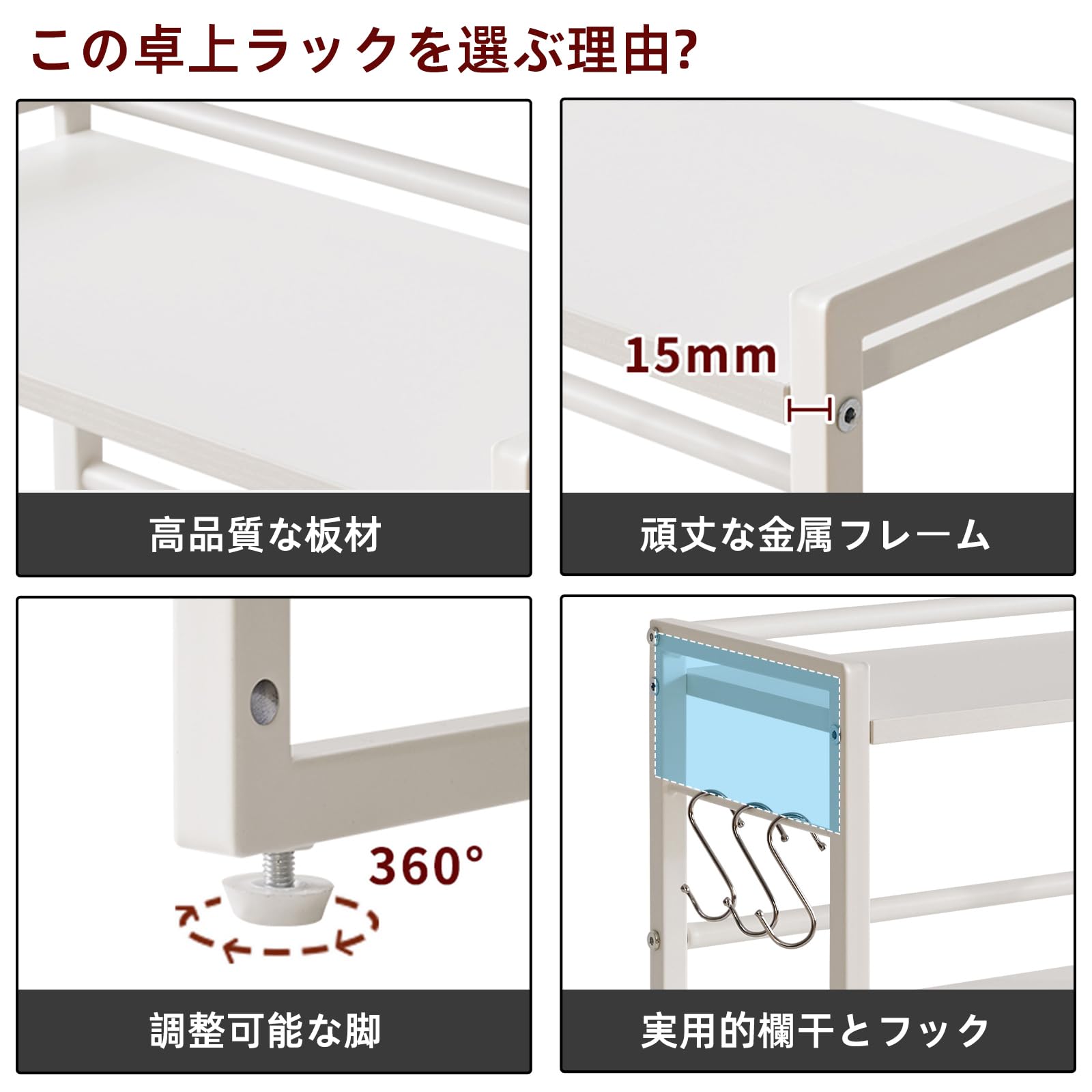 Aibiju 卓上 本棚 ラック デスク収納 棚板高さ調節可 2段 机上台 キッチン収納 調味料ラック フック付き 43*20*43cm ノート パソコン台 卓上 白 YD-DSR001W 10/08更新 | karuamiruku