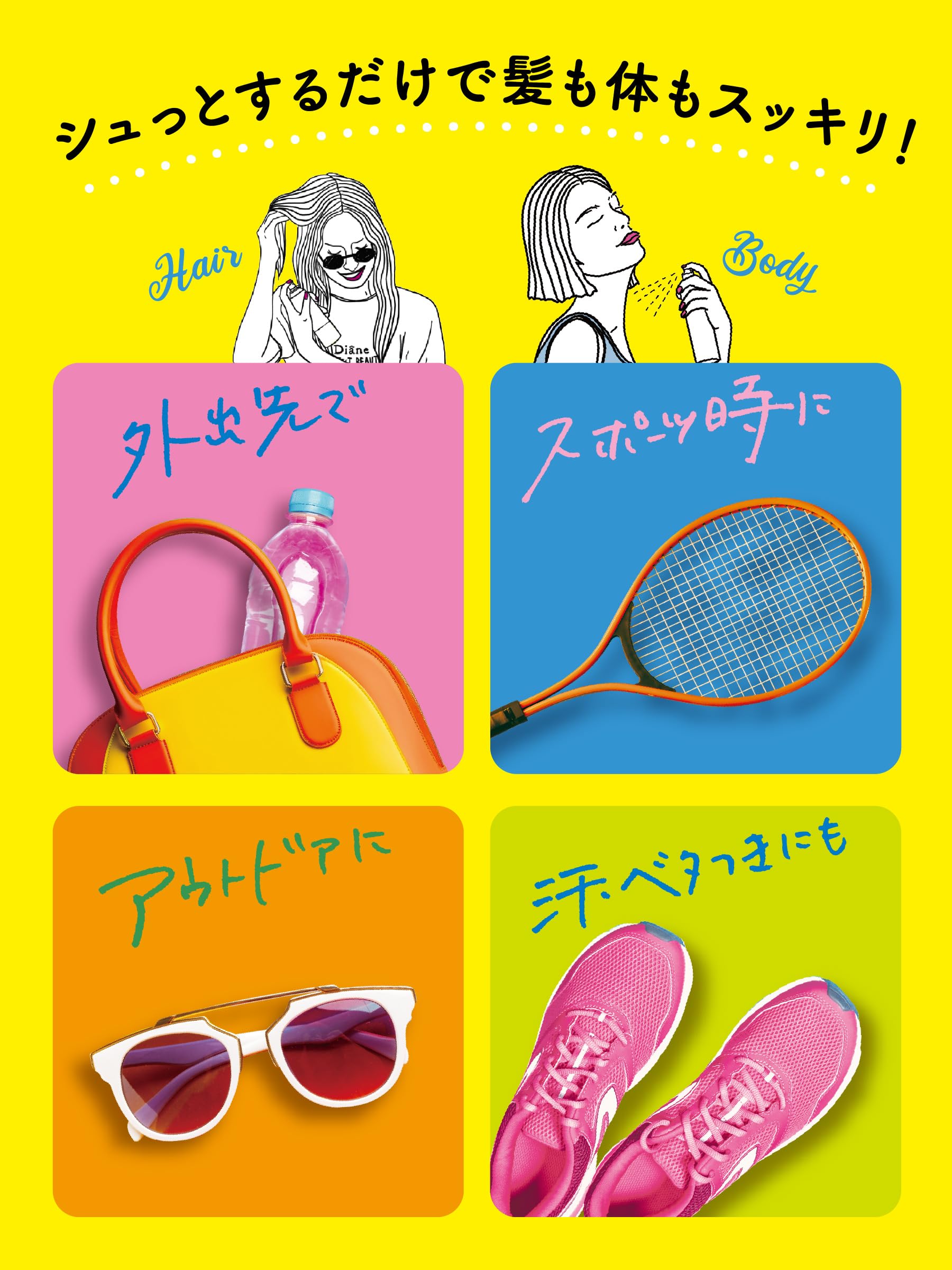 ダイアン デオドラントスプレー ボディ用ドライシャンプー [フレッシュシトラスペアの香り] 95g +BODY プラスボディ 制汗 スプレー。 商品紹介 髪にもからだにも使えるドライシャンプー。 洗い立てのようなすっきり感と爽やかな香りでリフレッシュ!汗や皮脂によるベタつきを抑えます。 フレッシュシトラスペアの香り。 ※パッケージデザイン等は予告なく変更されることがあります 原材料・成分 LPG、エタノール、オクテニルコハク酸デンプンAl 、ヤナギラン花/葉/茎エキス、o-シメン-5-オール、サリチル酸、セージ葉エキス、セイヨウハッカ葉エキス、ユーカリ葉エキス、レモングラス葉/茎エキス、ホホバ種子油、加水分解ケラチン、アルガニアスピノサ核油、マンゴー種子油、サンザシエキス、ナツメ果実エキス、リンゴ果実エキス、グレープフルーツ果実エキス、ライム果汁、オレンジ果汁、レモン果汁、セラミドEOP、セラミドNG、セラミドNP、セラミドAG、セラミドAP、クオタニウム-18、クオタニウム-33、コレステロール、香料、BG、ミリスチン酸イソプロピル、メントール、ピロ亜硫酸Na、水、PG、イソプロパノール、ジステアリルジモニウムクロリド、フェノキシエタノール 使用方法 容器を上下によく振ってからお使いください。 使用前に缶を上下によく振り、お肌から10cm以上離して適量をスプレーしてください。 安全警告 〈ご使用上の注意〉お肌に異常が生じていないかよく注意して使用してください。 目に入らないよう注意し、目に入ったときはこすらずにすぐに洗い流し、異物感が残る場合は眼科医にご相談ください。 顔面には使用しないでください。 換気のよい場所で使用し、吸入しないでください。 同じ箇所に連続して1秒以上噴射しないでください。 粉っぽさが気になるかたは、タオルなどでふきとってください。 頭皮や肌に傷、はれもの、湿しん等、異常のある時は、使わないでください。 使用中や使用後、赤み、はれ、かゆみ、刺激、色抜け(白斑等)や黒ずみ等の異常が現れた時は、使用を中止し、皮ふ科専門医等へのご相談をおすすめします。 乳幼児の手の届かないところに置いてください。 床についた場合はすべりやすくなるのですぐにふきとってください。 髪にもからだにも使えるドライシャンプー。 洗い立てのようなすっきり感と爽やかな香りでリフレッシュ!汗や皮脂によるベタつきを抑えます。 フレッシュシトラスペアの香り。 ※パッケージデザイン等は予告なく変更されることがあります。 S000-K1009