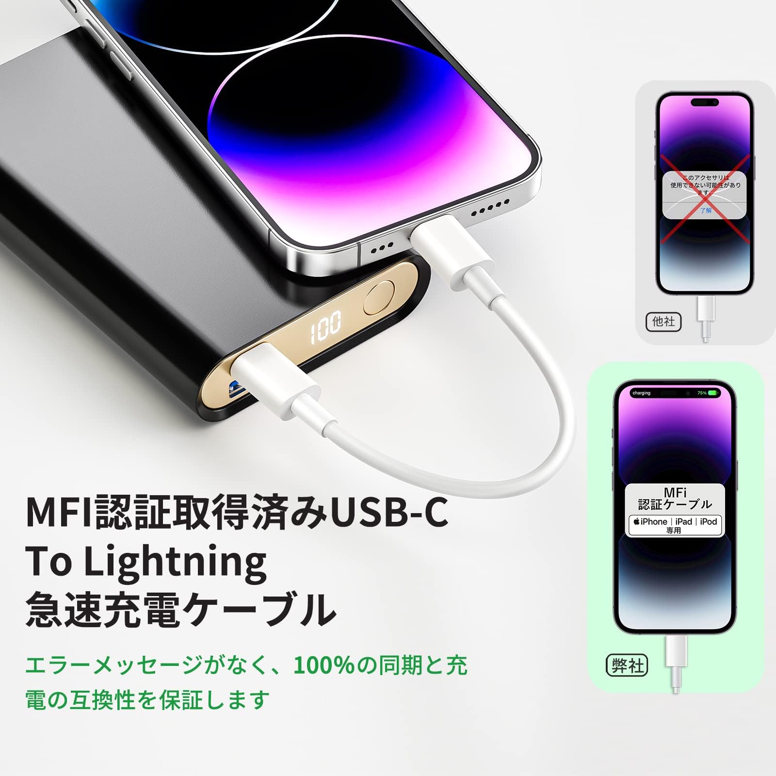 iphone 充電ケーブル 0.2m 3本セット ライトニングケーブル MFi認証 アイフォン充電ケーブル 急速充電&同期 データ転送 断線防止 超高耐久 lightning 14/13/12/8/SE/iPad/AirPods/Carplayなど各種対応。 【Apple MFi認証取得&PD USB C-Lightning 充電ケーブル】弊社のUSB-C to Lightningケーブルは、AppleのMFi (Made for iPhone)認証を取得しており、USB C-LightningケーブルがiOSシステムと完全に互換性があるだけでなく、Carplayに完全対応することを確認します。 【※Apple MFi認証:Apple MFi認証チップはApple会社発行されたオーソライズチップです、iOSのバージョンアップでも問題なし】。 【PD急速充電&データ輸送可USB C-Lightning 充電ケーブル】弊社のusb-c lightning充電ケーブルは最新のMFI認証チップと高品質の銅線を採用し、急速充電やデータ同期(480Mbps)も安心してお使いいただけます。 このタイプC iPhone充電ケーブルはPower Delivery規格に対応しており、最大3A/ 27Wの超高速充電に対応し普通のケーブルより早いスピードで充電が可能で、 効率的に充電時間を節約します。 ※急速充電には18W以上のUSB-C PDウォールチャージャー(充電器)が必要ですし、環境にも影響されるので、ご注意ください。 【柔軟なTPE素材&耐久性抜群USB C-Lightning 充電ケーブル】弊社のライトニング充電ケーブルはTPE素材を採用しており、断線しにくく、 一般的なケーブルより12倍以上の耐久性をもち、10000回以上の厳しい折り曲げテストもクリアしました。 表面は耐久性が高いTPE素材で充電中の過熱を防ぎ、コネクタの接続不良を起こしにくい安心設計です。 柔軟性を備えだけでなく折れ曲がりにも強く、通常使用では折れる心配はありません。 内部は過熱や過電流を効果的に防ぐことができるスマートチップが含まれて、短絡保護などの多重保護機能が備わい、高速データ転送・同期・充電を安心にお楽しみください。 【Type-C設備からiphoneへ充電&20cm/3本セット】本ライトニングケーブルはType-Cポート搭載の充電器、パソコンだけでなく、タブレット、 スマホなどもLightning端子のiPhoneやiPadに繋いで急速充電やデータ転送が可能です。 0.2M/3本のiPhone充電ケーブルからお選びいただけます。 モバイルバッテリーや携帯用充電器に巻き付けて持ち運ぶことも容易です。 そのため、デスクワークはもちろん、移動中や旅行先でもストレスなく活用いただけます。 清潔感あふれる素材と使いやすいデザインで、あらゆるシーンでお客様のデバイス利用をサポートします。 Unit count : 1.0。 S000-K1009