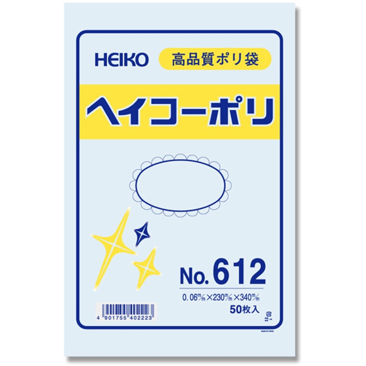 シモジマ ヘイコー ビニール袋 ヘイコーポリ No.612 0.06mm厚 紐なし 50枚 006620200 幅230高340mm。 柔らかな手触りで、食品から衣料用と何にでも使えるシモジマの高品質ポリ袋。 ソフトタッチなポリエチレン(LDPE)素材の本品は、サイズだけでなく素材の厚みも豊富に取り揃えがあるのが特徴です。 シモジマの高品質ポリ袋は、紐がついて吊るして使えるタイプ、紐無しで外袋の中央からティッシュのように引き出して使えるタイプ、空気が逃げる穴をあけたタイプなど、様々なニーズに対応した便利な商品です。 0.03mm以下の厚みのポリ袋は衣料品や雑貨の保管用の他ゴミ袋としてもおすすめ。 0.04mm以上の厚みのポリ袋は破れにくく丈夫ですので、食品の他、ボルトやネジなど重くてごつごつしたみのを入れるのにも安心です。 1枚サイズ:23×34cm。 厚み:0.06mm。 商品特徴1:紐なしタイプ。 商品特徴2:外袋のミシン目に沿って切り取っていただくと取出し口としてご使用いただけます。 内容量:50枚入。 S000-K9999