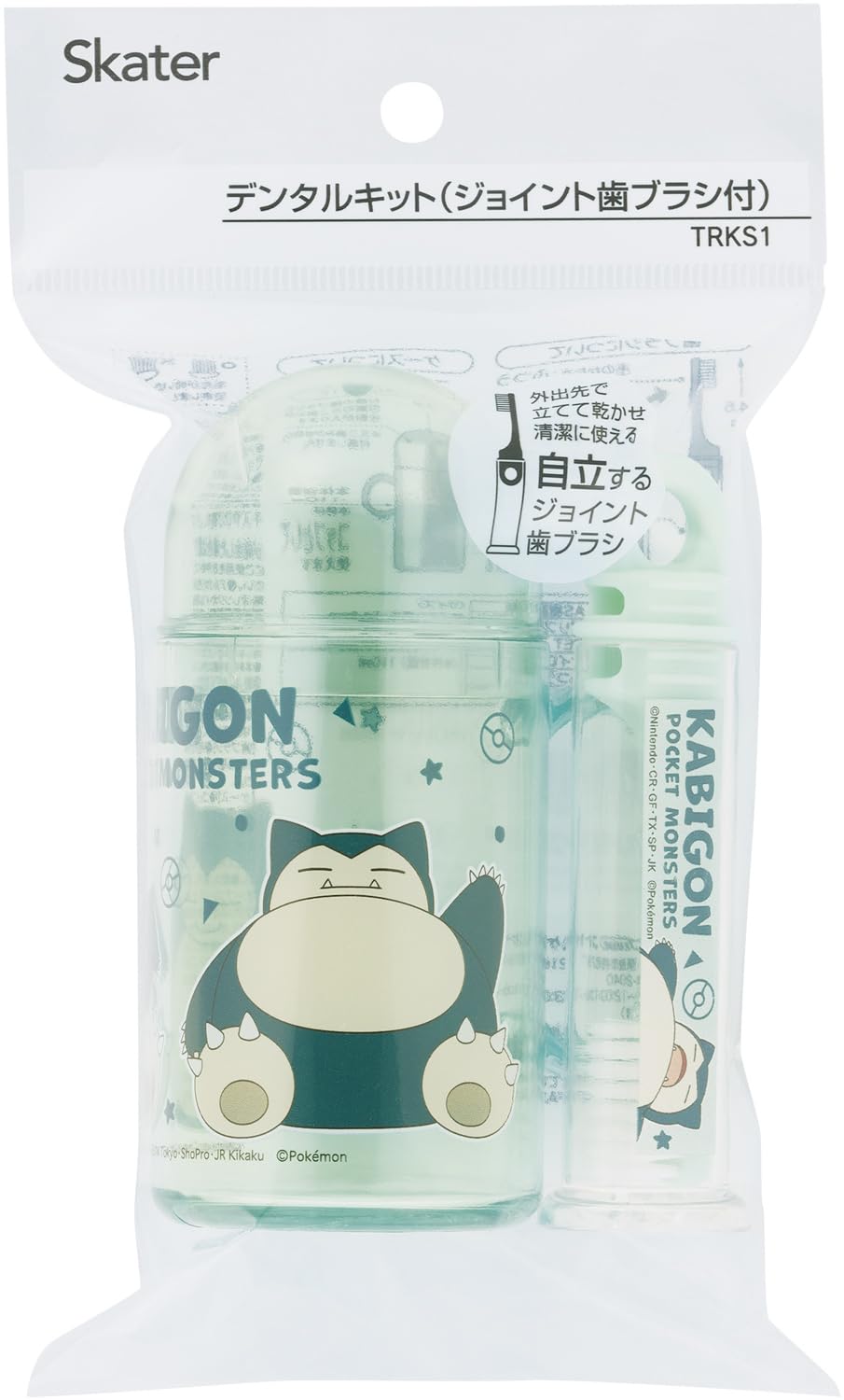 スケーター(Skater) 歯ブラシ 携帯用 携帯 トラベルセット 子供 歯ブラシケース はぶらし 毛の硬さ普通 14.5cm お出かけ 小学生 幼稚園 保育園 旅行 カビゴン ポケモン TRKS1。 旅行や学校、行楽などのお出かけ時に持って行きやすいジョイント式歯ブラシとコップにもなるケースのセットです。 歯ブラシは自立するので立てて乾かせて衛生的。 取っ手付きのケース本体はコップとしても使えて便利。 付属の歯ブラシの他にミニ歯磨き粉も入るサイズです。 毛の硬さはふつうです。 ※ミニ歯磨き粉は付属していません。 市販のミニ歯磨き粉は、サイズにより入らないものもありますので、良くご確認の上ご注意ください。 商品サイズ:ケース:H11×W7.3×D5㎝、歯ブラシ使用時:長さ14.5㎝収納時:H9.6×W2.8×D2.2㎝。 重量:55g。 S350-K9999