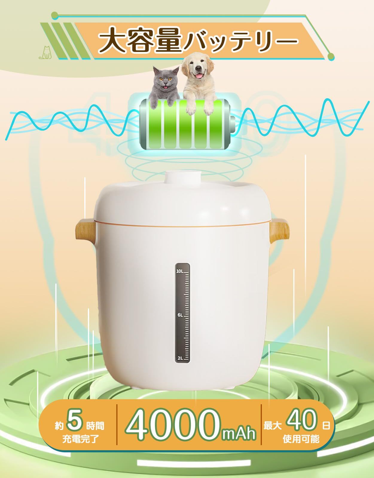 KIRIOCK 真空保存容器 ペットフードストッカー 真空 キャット/ドッグフード 保存容器 10L 防虫/湿気防止/酸化防止 梅雨対策 大容量 自動 密閉容器 充電式 米櫃 10kg 猫/犬 フード 餌 お米 保存 フードストッカー フリーズドライフード 鮮度キープ ABS食品級素材 袋のまま保存収納。 【自動真空動作原理】2024年の最新進化版のKIRIOCK真空保存容器/ペットフードストッカーは、圧力センサー搭載で、容器内の圧力が-15kPaを超えると(この大気圧ではバクテリアや害虫は生存できません)、自動的に圧力調整を行い、-20kPaの真空状態を維持します。 一般的な密閉容器に比べ、KIRIOCK真空容器は気密性に優れ、残留酸素や湿気も除去できるため、常に乾燥した新鮮な状態を保ち、お米やペットフードの理想的な保存容器となっています。 【鮮度長持ち】この真空保存容器を食品(お米、ドッグフード、キャットフードなど)の保存に常時使用すれば、最大3ヶ月間、本来の鮮度と風味を保つことができます。 湿気や酸化から食品を確実に守り、従来の保存容器と比べて2〜4倍も賞味期限を延長できるため、食品ロスや無駄な出費を効果的に抑えることができます。 米櫃 10kgとペットフードストッカーとして最適。 【ワンプッシュで操作便利】 この真空フードストッカーは指1本でボタンを押すだけで、操作簡単の真空フードストッカーです!。 【猫ちゃんのために低騒音設計】 KIRIOCK真空容器(ペットフードストッカー)は、わずか40dBの静かな運転音設計となっています。 睡眠中や作業中でも気にならない低騒音ですので、飼い猫ちゃんにも全く影響を及ぼしません。 「ご注意:気密性の高めるため、作業中は必ず蓋を5秒間押してください」。 【幅広い用途】 キャットフード、ドッグフード、ペットフード、お米、小麦粉、海苔、コーヒー豆、乾物、生薬、お茶、パン、パフ食品など色々保存できます。 虫や湿気から食品を守り、保存期間を延ばす優れた真空保存容器。 良いライスストッカー(米櫃 10kg)とペットフードストッカーとして、キッチンの整理収納・お片付けが苦手な方に超おすすめ!。 【お手入れ簡単】 オープンデザインバレルでお手入れ簡単。 保存容器は丸洗いできて清潔に保てます。 ハンドルが2つ付き、お持ち運びは便利です。 【TYPE-C充電式】KIRIOCK真空容器は自動真空保存で脱気の手間を省き、手動式より便利。 この密閉容器は2000mAh大容量バッテリーを搭載し、一度フル充電で連続20日以上長く使える。 S000-K9999