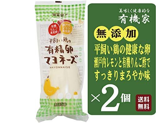 有機家 無添加 平飼い鶏の有精卵マヨネーズ 290g×2個 コンパクト ”旬菜健美”卵は平飼い鶏の有精卵を使用し、原材料に徹底して「自然」を追求したカラダにおいしいマヨネーズです。 原材料:なたね油(国内製造)、卵、りんご酢、果実酢、砂糖、食塩、香辛料 商品情報卵は元気な鶏が産んだ有精卵を使用しています。 化学調味料は一切使用しておりませんので、素朴な味わいになっています。 なたね油 ⇒遺伝子組換えでない菜種の圧搾一番搾り油です。 有精卵 ⇒雄鶏と雌鶏が自然に交配できる環境(平飼い)で産んだ卵を使用しています。 果実酢 ⇒まろやかな酸味の有機りんご酢とすっきりとした酸味の瀬戸内レモンの果実酢です。 食べ方・使用方法サラダはもちろん、魚のオイル漬け、お寿司・漬物などに。 お好みにあわせて、レモン・醤油・とうがらし・マスタード等を加えて下さい。 ※0℃以下になると分離することがありますのでフリーザーで保管しないでください。 ※製品中の黒い斑点は、原料に使用している香辛料です。 ※キャップのアルミシールは完全にはがして捨ててください。 賞味期限:開封前:6カ月 ・開封後:冷蔵庫(5〜10℃)に保管し1ヶ月以内にお召し上がりください。 S000-K9999