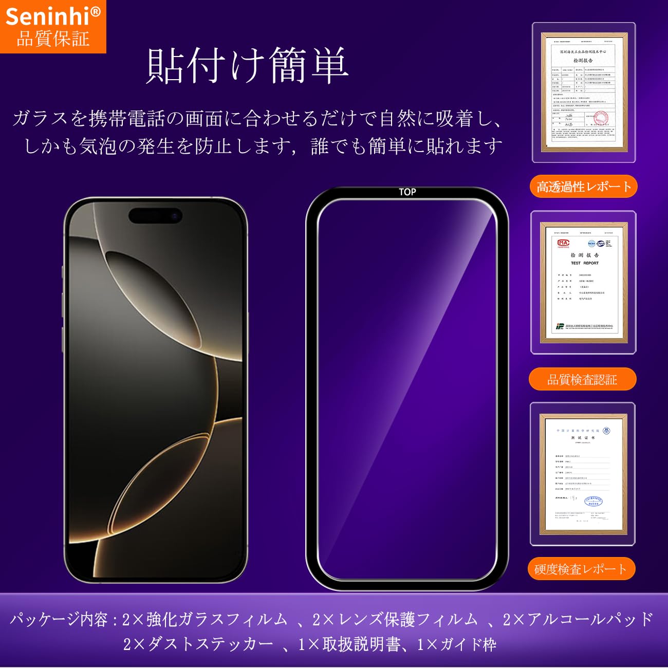 対応 iPhone 16 Pro Max ガラスフィルム ガイド枠付き 【2枚強化ガラス+2枚レンズ保護+ガイド枠】 iPhone16ProMax フィルム 指紋防止 レンズ/液晶 保護フィルム 硬度9H 耐衝撃 飛散防止 自動吸着 気泡ゼロ ラウンドエッジ加工 超薄 超高質感 貼り付け簡単 SENWC4AP16PM 10/07更新 | karuamiruku