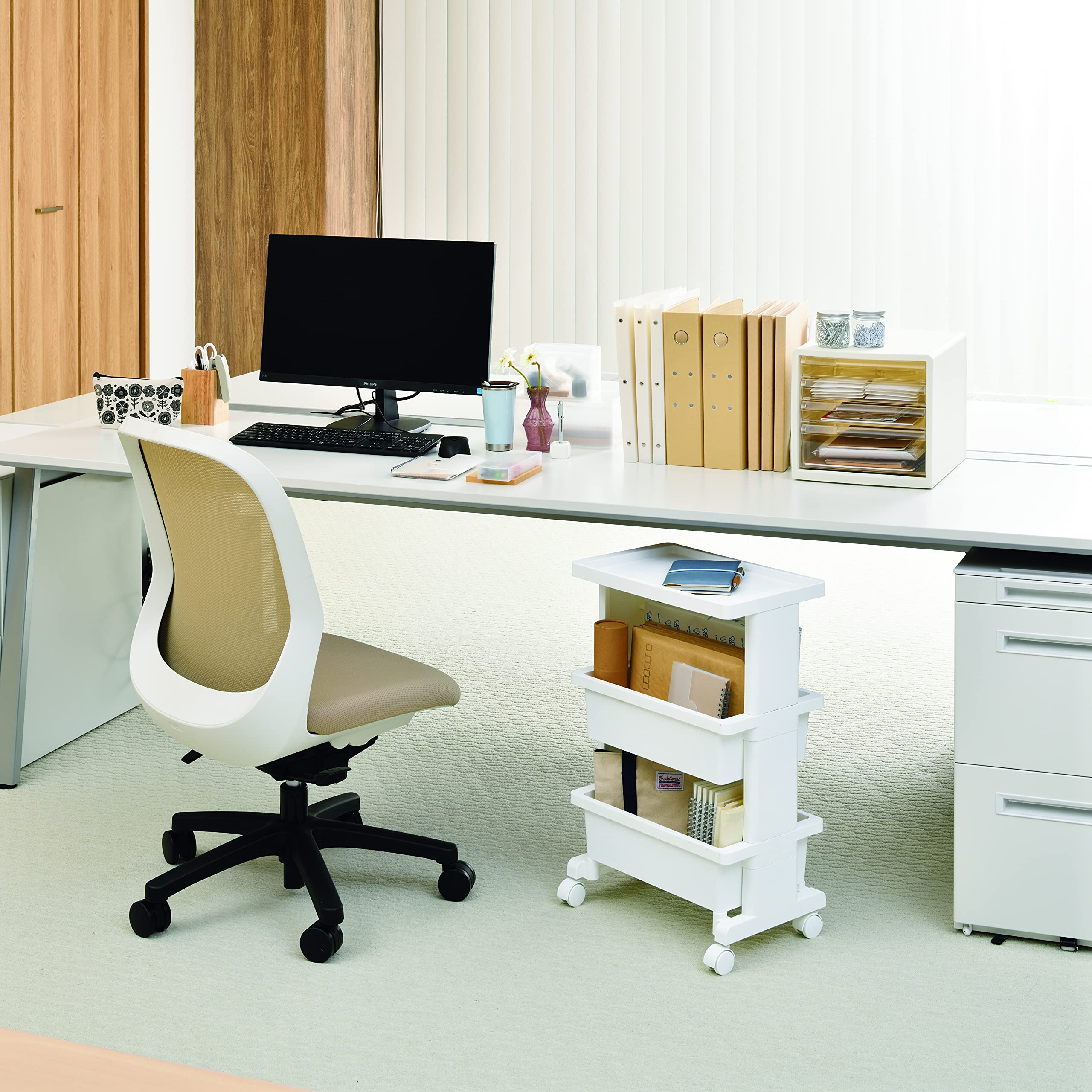 JEJアステージ(JEJ Astage) リセ テーブルワゴンミニ 日本製 組立式 3段 キャスター付 ライトグレー 幅40×奥行25×高さ62.5cm。 商品紹介 1 安全警告 棚板2kg、本体1段あたり2kgの重量制限を超えないでください。 不均一な表面で移動する際は転倒を防ぐために注意してください。 原産国:日本。 商品サイズ(約):幅40×奥行25×高さ62.5cm。 収納カゴ:幅32×奥行21.4×高さ10.4cm。 耐荷重(約):天板2kg、本体1段あたり2kg。 材質:天板・支柱・脚/ポリプロピレン、キャスター:ポリプロピレン(鉄心入)。 S000-K9999