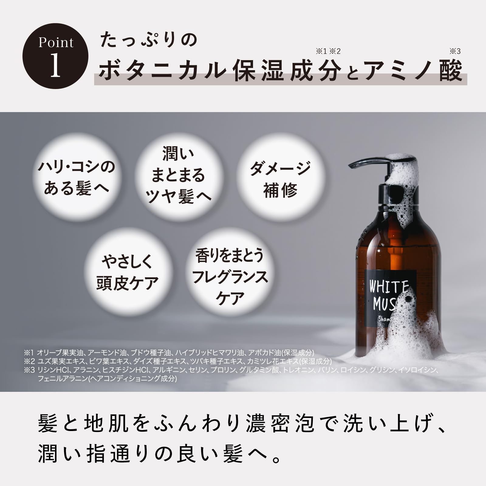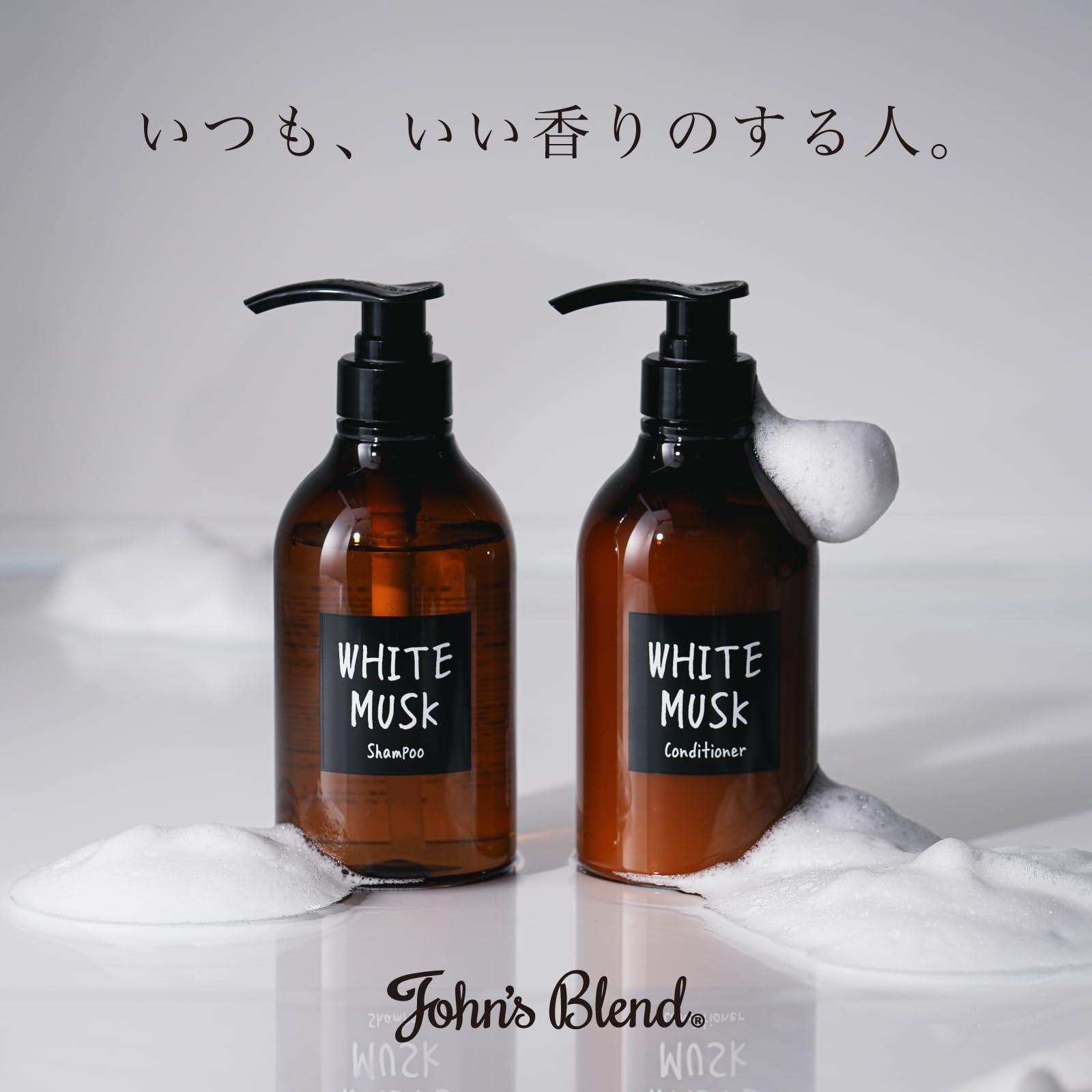 ホワイトムスク シャンプー ジョンズブレンド モイスト フレグランスシャンプー 本体 480mL ダメージケア 香水シャンプー。 ジョンズブレンド自慢のホワイトムスクの香りをたっぷりと配合した「フレグランス」シャンプー。 ホワイトムスクの奥深く透明感あふれる印象はしっかりと残しながらアップルとペアが奏でる優しいフルーティーノートから始まり、ほのかに香るグリーンのエッセンスが爽やかな印象を運びます。 次第に透明感あふれるピーチの瑞々しい甘さをホワイトフローラルの奥深い華やかさが包み込み、落ち着きのある凛とした印象を与えます。 たっぷりうるおいチャージでダメージ補修。 10種のボタニカル保湿成分と13種のアミノ酸を配合。 アミノ酸成分(リシン HCl、アラニン、ヒスチジン HCl、アルギニン、セリン、プロリン、グルタミン酸、トレオニン、バリン、ロイシン、グリシン、イソロイシン、フェニルアラニン(ヘアコンディショニング成分))、5種の植物油(オリーブ果実油、アーモンド油、ブドウ種子油、ハイブリッドヒマワリ油、アボカド油 )、5種の植物エキス(ユズ果実エキス、ビワ葉エキス、ダイズ種子エキス、ツバキ種子エキス、カミツレ花エキス)。 内容量:480mL。 S000-K9999