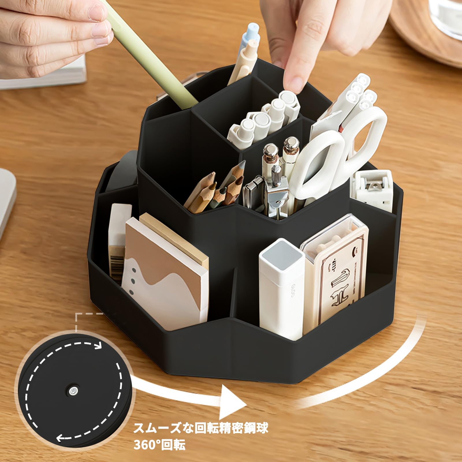 JXCXSON ペン立て 360度回転 ペンホルダー ペンスタンド 大容量 ぺんたて 9グリード分類鉛筆たて 多機能 分類箱 小物 卓上収納 文房具 化粧品 便利 オフィス 家庭生活用 収納ボックス(ブラック) 10/08更新 | karuamiruku
