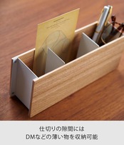 山崎実業 ペン&リモコンラック リン ナチュラル 2732。 美しい木目でインテリア性のあるスタイリッシュで使い易いリモコンラック。 仕切りの隙間にDMなども収納可能。 サイズ:約W25XD7XH10.2cm。 本体重量:約0.5kg。 素材・材質:本体:スチール(粉体塗装)・天然木積層合板(ラッカー塗装) マット:合成ゴム。 ご注意:製品に使用している素材は、天然木の性質上、色、柄、サイズ等異なる場合があります。 S000-K9999