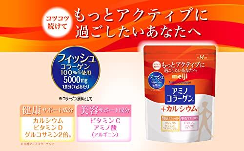 アミノコラーゲン プラスカルシウム 14日分 98g。 商品紹介 美容を気にしながらも、年齢と共に衰える骨や関節のケアを行いたい方に、アミノコラーゲンの基礎美容成分はそのままに、カルシウム102㎎とグルコサミン120㎎を強化したコラーゲンパウダー。 飲みやすく、溶けやすいので、お好きな飲み物・食事に1日1杯(約7g)溶かすだけ。 使用上の注意 ・あけくちや袋のはしで手を切るなどのケガをしないようにご注意ください。 ・体質や健康状態によっては身体に合わない場合があります。 その場合は摂取を中止し、医師や専門家にご相談ください。 ・通院中の方、投薬を受けている方、体調のすぐれない方は摂取について医師や専門家にご相談ください。 ・天然物を使用しておりますので、まれに色が変化することがありますが、品質には問題ありません。 ・食品によるアレルギーが認められる方は、原材料をご確認ください。 原材料・成分 魚コラーゲンペプチド、マルトデキストリン、植物油脂/炭酸Ca、グルコサミン、ビタミンC、アルギニン、増粘剤(アルビアガム)、乳化剤、香料、ビタミンD、(一部にオレンジ、大豆、ゼラチン、キウイフルーツを含む)。 商品サイズ(幅×奥行×高さ):150mm×82mm×200mm。 内容量:98g。 カロリー:1食分(7g):26kcal。 原産国:日本。 保存方法:開封後はホコリや髪の毛が入らないようチャックをしっかりとしめ、温度や湿度の高い場所を避けて保管し、なるべく早めにお召上がりください。 S000-K9999