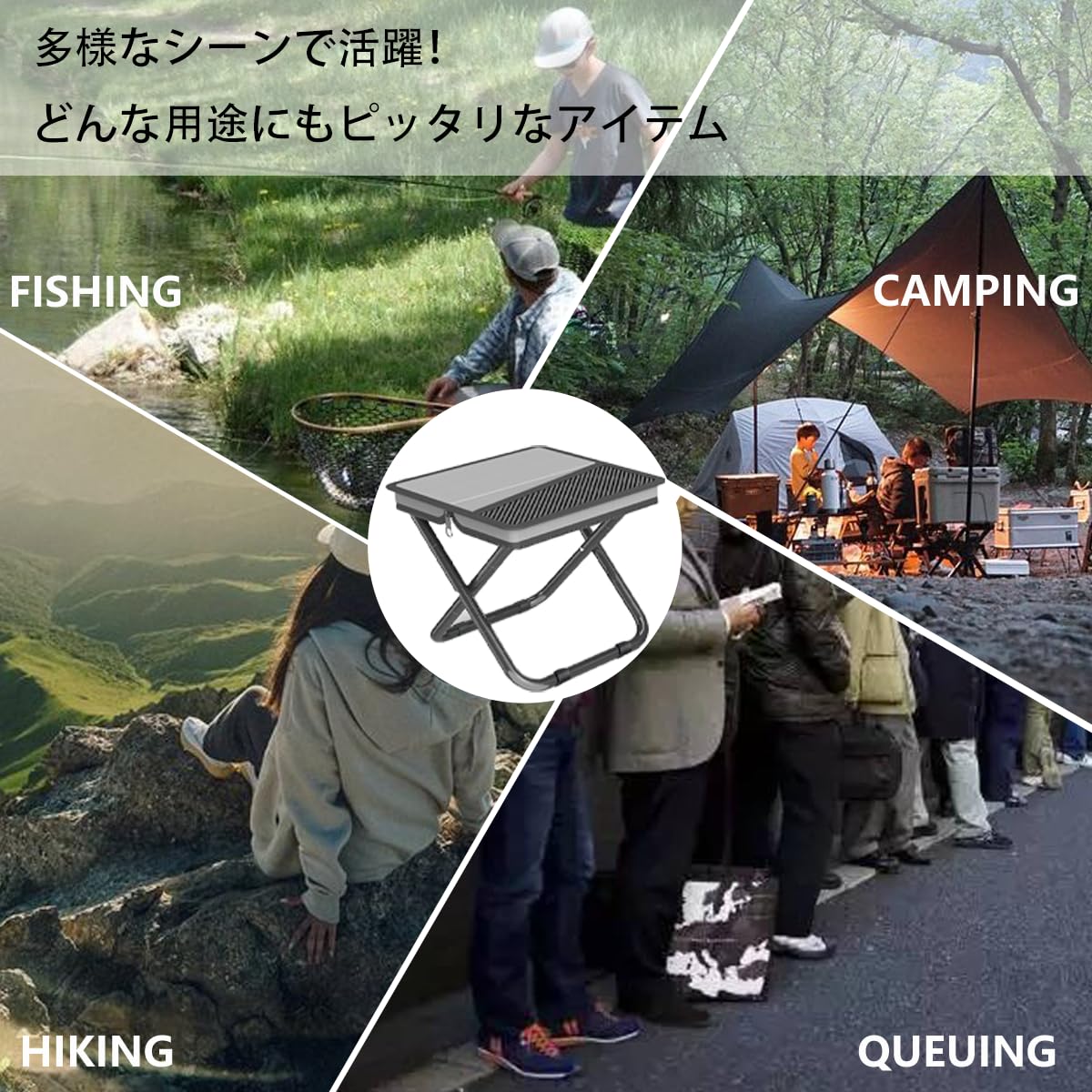 耐荷重100kg折り畳み椅子【革新肩ベルト付き】収納袋一体化超軽量 キャンプチェア フィッシングスツール - グレーカーボンスチール フットパッドとキーチェーン付き スタイルポケット お釣り バーベキュー 登山 野外 ハイキング 登山 屋外用。 【お客様の声から見る魅力】 ▼「滑り止めが効いていて、不安なく使えます」(50 代 男性 キャンプ常連) ▼「収納ポケットが便利で、小物を紛失する心配がなくなりました」(30 代 女性 ハイキング愛好家) ▼「持ち運びが軽いので、子どもとの外出に最適です」(20 代 母親) 【あなたのアウトドアライフを「快適」に変える最後のチャンス!】 「これでもっと楽しい野外生活」を手に入れるべく、今すぐカートに追加!。 【実用性の高いスツールの魅力】 軽量で強固なバランス 重量約 540g(1.2 ポンド)で、子供でも持ち運び可能。 しかし、丈夫な構造で最大 120kg(265 ポンド)を支持し、長時間の使用にも耐えます。 【アップグレードされ改良されたデザイン】 ①高強度滑り止めフットパッド搭載。 ②収納がもっとスマート!メッシュポケット追加。 ③斜め掛けが楽に!キャリーバッグデザイン。 【多用途設計】 キャンプ、ハイキング、釣り、園芸、ビーチアウト、列車待ちなど、あらゆるシーンで便利な座りスペースを提供します。 【簡単操作】 シンプルな折りたたみ構造で、瞬時にセットアップと収納が可能。 接続パイプを外側に引き、回転させるだけで数秒で展開・折りたたみが完了します。 【あなたの生活にピッタリなスツールを是非お試しください】 詳細は商品ページをご確認の上、お買い得なタイミングをお見逃しなく。 S000-K9999