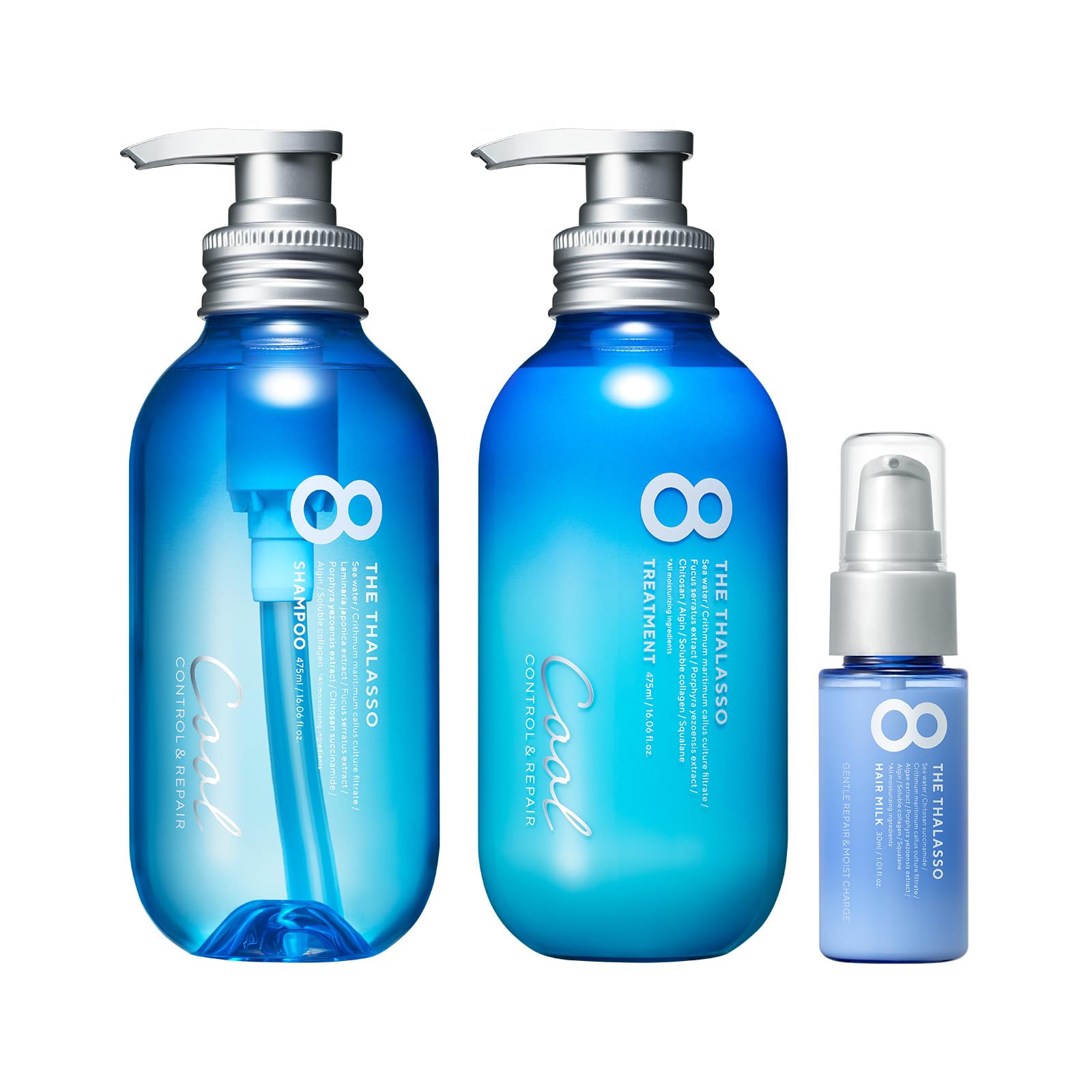 エイトザタラソ コントロール&リペア シャンプー&ヘアトリートメント ミニヘアミルク付き 限定キット(フローズンホワイトフローラルの香り/クール)。 商品の説明 数量限定発売 湿気でうねり・広がり・まとまらない髪に集中アプローチする“新*・うねりクール処方*1”のシャンプー&トリートメントの限定キット。 うねりケアケラチン*2と海洋美髪成分*3が髪の水分バランスを整え、スタイルの決まりやすい素直な髪に導きます。 真夏の紫外線による乾燥ダメージも潤いを与えて補修し、サラサラで指通りの良いなめらかな質感に。 汗や皮脂のベタつきもスッキリ洗浄し、暑い季節でもさっぱり使える冷涼感のある使い心地です。 フローズンホワイトフローラルの香り。 【キット内容】 ・エイトザタラソ コントロール&リペア 美容液シャンプー 475mL ・エイトザタラソ コントロール&リペア 美容液ヘアトリートメント 475mL ・エイトザタラソ ジェントルリペア&モイストチャージ 美容液ヘアミルク(おまけ) 30mL *自社エイトザタラソシリーズ内 2025年5月現在 *1 潤いを与えることでうねりをケアする処方のこと *2 エイトザタラソ コントロール&リペア シャンプー:イソステアロイル加水分解シルク、ステアルジモニウムヒドロキシプロピル加水分解ケラチン(羊毛)(全て保湿)/エイトザタラソ コントロール&リペア ヘアトリートメント:ステアルジモニウムヒドロキシプロピル加水分解ケラチン(羊毛)(保湿)*3 エイトザタラソ コントロール&リペア シャンプー:マコンブエキス、フカスセラツスエキス、スサビノリエキス、キトサンサクシナミド、クリスマムマリチマムカルス培養液、海水、アルギン酸Na、水溶性コラーゲン(全て保湿)/エイトザタラソ コントロール&リペア ヘアトリートメント:フカスセラツスエキス、スサビノリエキス、キトサン、クリスマムマリチマムカルス培養液、スクワラン、海水、アルギン酸Na、水溶性コラーゲン(全て保湿)/エイトザタラソ ヘアミルク:クリスマムマリチマムカルス培養液、スサビノリエキス、アルゲエキス、アルギン酸Na、海水、水溶性コラーゲン、スクワラン、キトサンサクシナミド(全て保湿) 使用方法 シャンプーを濡れた髪に塗り、泡立て、すすぎます。 その後、コンディショナーを塗り、数分間放置してからすすぎます。 数量限定発売 湿気でうねり・広がり・まとまらない髪に集中アプローチする“新*・うねりクール処方*1”のシャンプー&トリートメントの限定キット。 うねりケアケラチン*2と海洋美髪成分*3が髪の水分バランスを整え、スタイルの決まりやすい素直な髪に導きます。 真夏の紫外線による乾燥ダメージも潤いを与えて補修し、サラサラで指通りの良いなめらかな質感に。 汗や皮脂のベタつきもスッキリ洗浄し、暑い季節でもさっぱり使える冷涼感のある使い心地です。 フローズンホワイトフローラルの香り。 【キット内容】 ・エイトザタラソ コントロール&リペア 美容液シャンプー 475mL ・エイトザタラソ コントロール&リペア 美容液ヘアトリートメント 475mL ・エイトザタラソ ジェントルリペア&モイストチャージ 美容液ヘアミルク(おまけ) 30mL。 *自社エイトザタラソシリーズ内 2025年5月現在 *1 潤いを与えることでうねりをケアする処方のこと *2 エイトザタラソ コントロール&リペア シャンプー:イソステアロイル加水分解シルク、ステアルジモニウムヒドロキシプロピル加水分解ケラチン(羊毛)(全て保湿)/エイトザタラソ コントロール&リペア ヘアトリートメント:ステアルジモニウムヒドロキシプロピル加水分解ケラチン(羊毛)(保湿)*3 エイトザタラソ コントロール&リペア シャンプー:マコンブエキス、フカスセラツスエキス、スサビノリエキス、キトサンサクシナミド、クリスマムマリチマムカルス培養液、海水、アルギン酸Na、水溶性コラーゲン(全て保湿)/エイトザタラソ コントロール&リペア ヘアトリートメント:フカスセラツスエキス、スサビノリエキス、キトサン、クリスマムマリチマムカルス培養液、スクワラン、海水、アルギン酸Na、水溶性コラーゲン(全て保湿)/エイトザタラソ ヘアミルク:クリスマムマリチマムカルス培養液、スサビノリエキス、アルゲエキス、アルギン酸Na、海水、水溶性コラーゲン、スクワラン、キトサンサクシナミド(全て保湿)。 S350-K9999