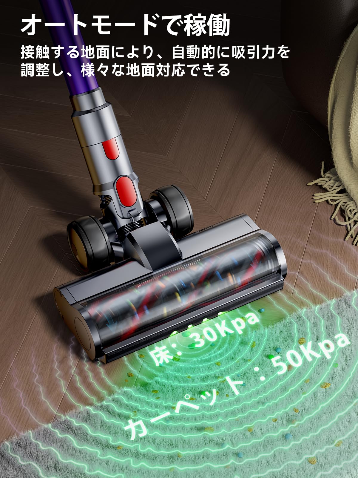掃除機 コードレス 【革新モデル!600W 50Kpa超強力吸引・自立式・置く充電可能・グリーンライト搭載・ 65分長時間稼働・ホコリ自動検知・絡まないヘッド】 LED液晶ディスプレイ 3段吸引力 スティック 掃除機 サイクロン 7重濾過 着脱式バッテリー 1.5L大容量ダストカップ 伸縮型パイプ 日本語説明書 スティッククリーナー 多様ノズル付き PSE認証済 2年品質保証。 【600Wブラシレスモーター・50KPaハイパワー・革新!グリーンLEDライト搭載】SMOTURE VAC02コードレス 掃除 機は600Wブラシレスモーター搭載し、吸引力が50KPa以上に達します。 普通の掃除機と比べ、55%よりパワフルに。 ハイパワーブラシレスモーターを採用されて、安定したパワー供給により、長い時間変わらない吸引力が続き、しっかり掃除できます。 サイクロン式で、優れた多重濾過システムを通して、きれいな空気を排出します。 スイッチボタンを押すだけで(連続稼働モード設定)、電源コードに縛られなくて、とても便利です。 その上、新たに緑色のLEDライトが備わっており、微細なホコリを可視化!従来の掃除機より可視率2倍アップ!暗いところはもちろん明るいところでも、見えにくかったゴミを浮かび上がらせて、微細なホコリや毛も可視化されて掃除効率を高めます。 【実用性を考えたデザイン・自立式】 このSMOTURE最新型VAC02コードレスクリーナーも先端的な技術で作られた液晶ディスプレイを採用し、残りの運転可能時間やメンテナンス提示などを表示してくれるのもポイント。 使用状態を一目でわかる。 より快適な使用体験をもたらします。 それに、ヘッドが前後90・左右180°回転可能。 小回りが利くので、階段や家具の足のような狭いスペースもサッと掃除できます。 更に、自立するので収納しやすいです。 スタンドを使ったり、吊るしたり、掛けたりする必要がありません。 なおこちらのスペースは掃除機用収納で、コンセントもあるので、あわせて充電できるのも嬉しいですね。 サッと使えて、お掃除中でパッと置ける便利さは魅力的です。 【オートモードで稼働可能・絡まないヘッド】 オートモードで自動に吸引力を調節することは実現します!エネルギーを節約するために適切な吸引レベルをインテリジェントに調節できるオートモードを選択できます。 より効率的なクリーニングとより長い稼働時間を実現しています。 更に、新開発の「からまないブラシ」を採用することで、髪の毛に絡まないところはメリット!ゴミ捨てやお手入れも楽にできます。 ブラシ交換不要、掃除する場所に合わせてヘッドを選ぶ悩みがないです。 木の床や畳はもちろん、たとえば、カーペットや絨毯も入り込んだゴミをかき出してずんずん吸い込めます。 【65分長時間稼働・置くだけで充電】8*大容量高密度リチウムイオン着脫式バッテリーで、一回満充電すれば60分間までも安定した電力を提供し、部屋をしっかり掃除できます。 PSE認証済で安心安全。 急速充電、約4時間でフル充電できます。 その上、そうじきの予備バッテリー(別売り)を使えば、稼働時間倍増し、1DKのひとり暮らし家から、一戸建ての家まで一気に掃除できます。 長時間使ったり、外に持ち出したい時も、バッテリーを変えて続けて使用できます。 充電しながら収納できるため、充電のし忘れを防げるので、充電切れの心配がありません。 他に壁掛け式の収納用ブラケット付属し、コンパクトで場所取らないの上に、置く時に充電すれば、次の掃除のときにすぐに使えます。 使い勝手に配慮しているのも魅力です。 *ご注意:*壁ブラケットが収納しながら充電できます。 壁ブラケットを使用しなくても、バッテリーへ単独に充電することも可能です。 取り出しやすい、いつまでもお部屋をきれいにキープできます。 S000-K1009