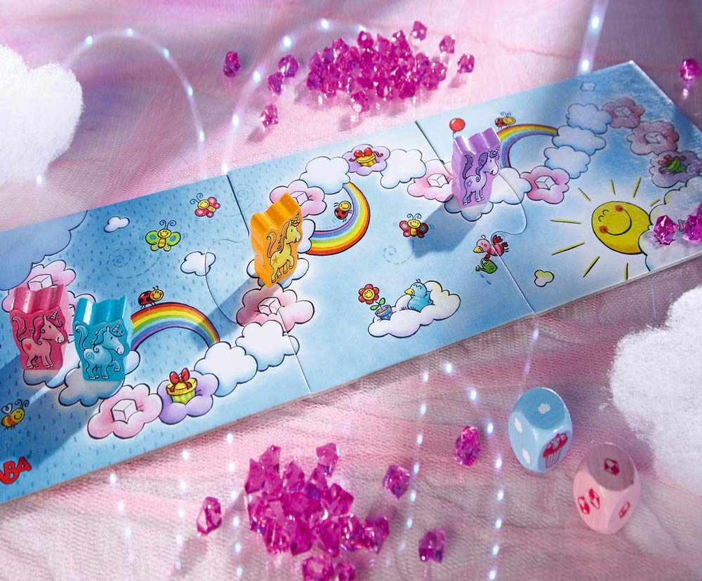 ハバ HABA 雲の上のユニコーン HA303315。 ヨーロッパのおもちゃ業界におけるNO1ブランドであるHABA社は1938年の設立。 ドイツのローダッハという小さな町に1200名の従業員を抱え、企画・デザインから小さな木製部材までもすべて自社で作るという、まさしくドイツのマイスター精神が息づいているブランドです。 楽しく、飽きずに長く付き合える品質と最良の素材、そして安全性にこだわり続け、アイディアに富んだ知育玩具を世界に発信しています。 天空を舞台にサイコロを使い、クリスタルを数多く集めながらゴールを目指します。 初めてのすごろく遊びに最適です。 サイズ:紙製ボード 14×44cm 対象年齢:5歳頃から。 サイズ:紙製ボード 14×44cm 対象年齢:5歳頃から。 ふわふわとした雲の上を駈けるユニコーンですごろく遊び!。 S000-K9999