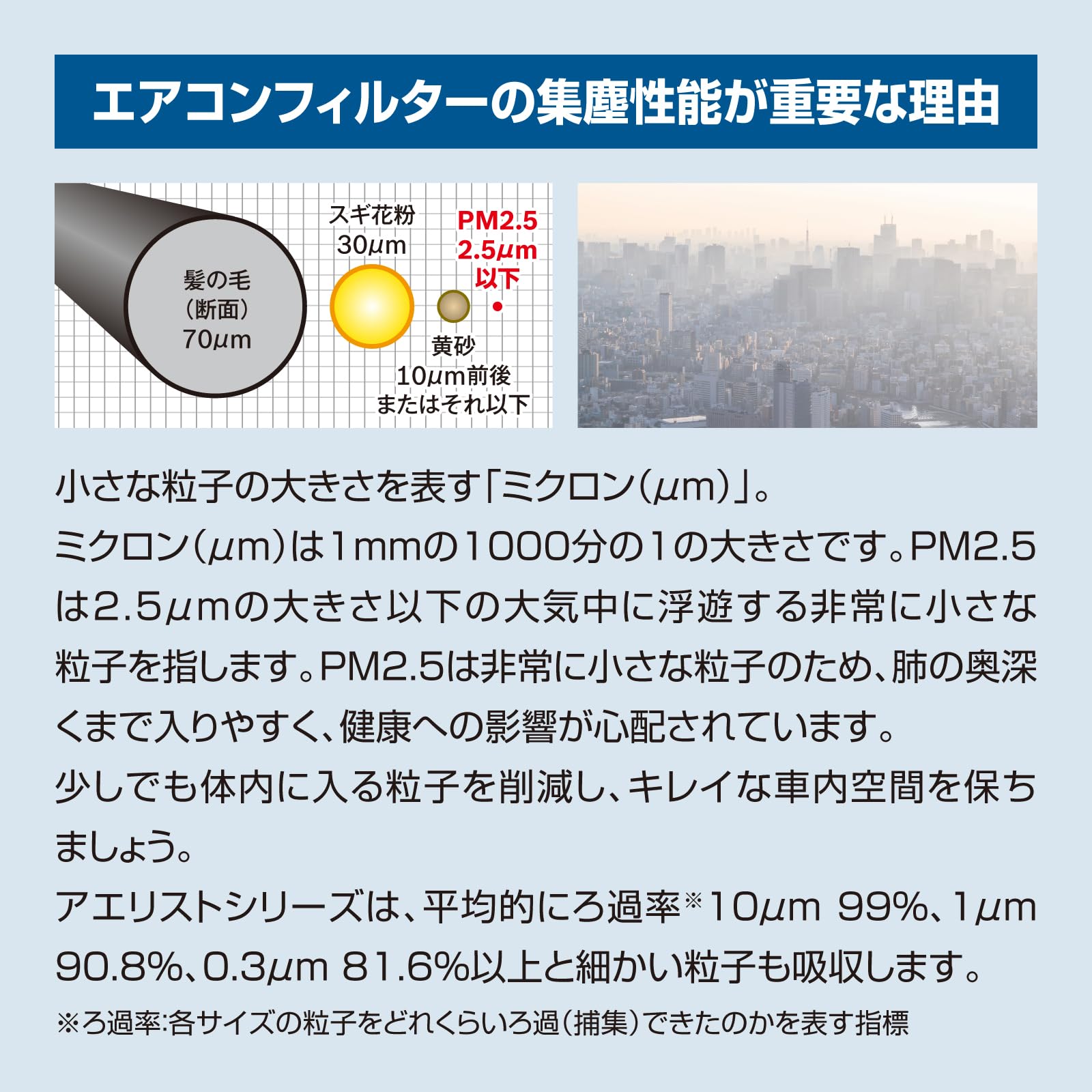 BOSCH(ボッシュ) スバル車用エアコンフィルター アエリストプレミアム (抗ウイルス・抗アレルタイプ) AP-F06。 商品紹介 スバル車用 エアコンフィルター 使用上の注意 ※輸入品のため外箱にダメージがある場合がございます。 予めご了承ください。 写真はメーカー提供のイメージ写真です。 実際の商品とパッケージが異なる場合がございますので予めご了承ください。 世界有数の自動車部品サプライヤー 信頼のボッシュ製。 [特徴] 抗アレル物質・抗ウイルス・抗菌・防カビ・脱臭・集塵 全ての機能を搭載したプレミアムエアコンフィルター。 [代表適合車種] インプレッサ / エクシーガ / フォレスター / レヴォーグ。 [デンソー(DENSO) クリーンエアフィルター互換品番] DCC5005。 [交換目安] 1年もしくは10,000km走行後 (目に見えないチリやホコリの蓄積や、活性炭の消臭機能の低下により、本来の性能が発揮できなくなる目安)。 S000-K9999