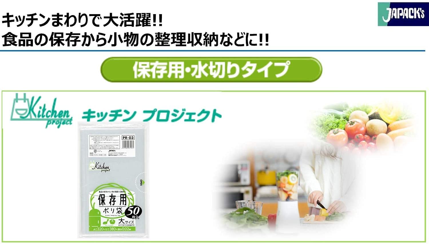 ジャパックス 保存袋 透明 横32㎝×縦38㎝×厚み0.02mm 50枚 キッチンプロジェクト 保存用 ポリ袋 大サイズ PR03 08/04出品