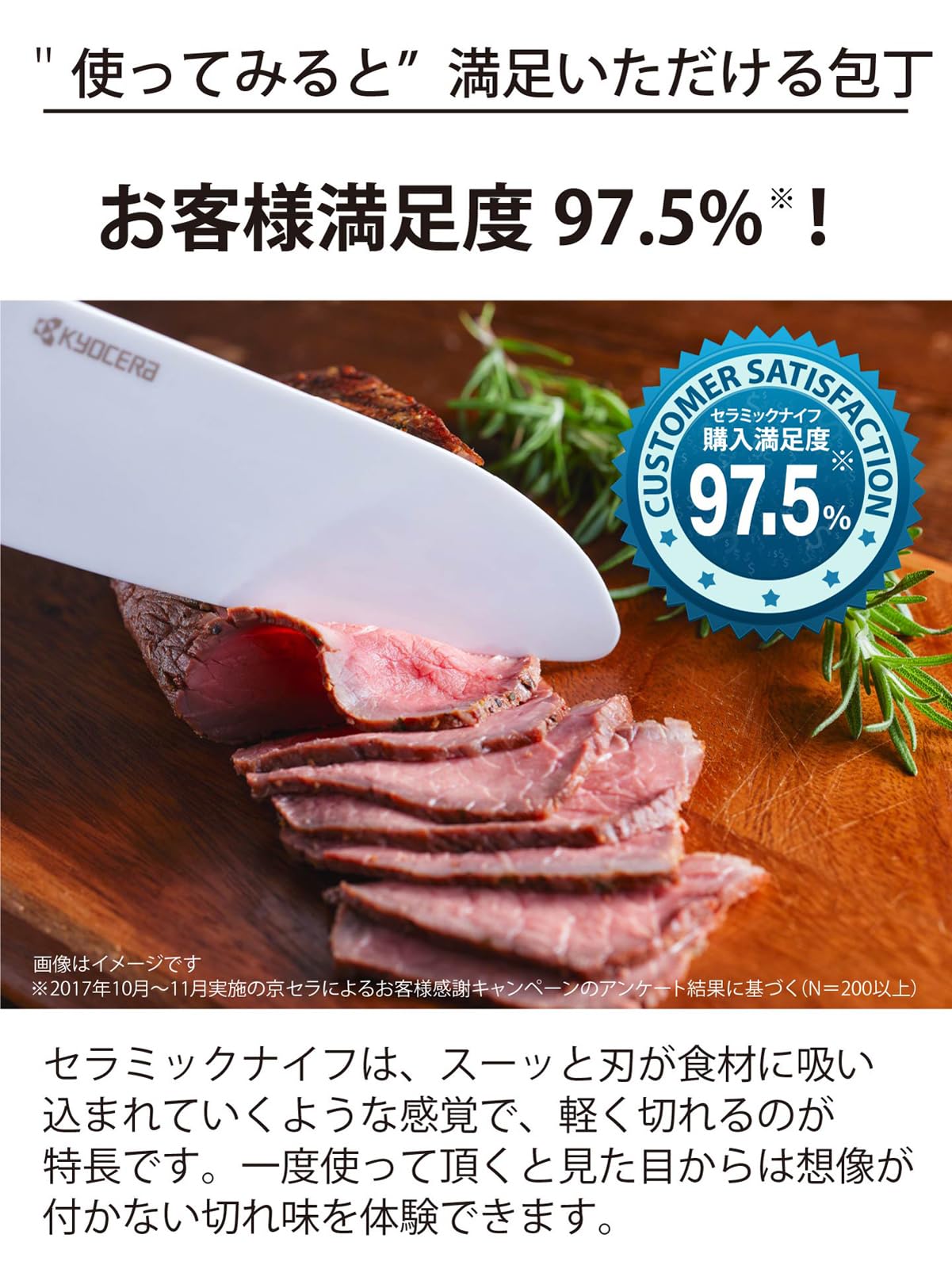 京セラ セラミック 包丁 軽く 鋭く キレイに切れる 包丁 三徳 小 14cm 硬いから切れ味が長く続く サビない素材 よく切れる 食洗機 除菌漂白 OK セラミック包丁 牛刀 中華 チャームピンク FKR-140CPK。 【カラフルキッチンシリーズ】 普段使っている金属包丁から気分を変えるきっかけとなるナイフへ ここちよい使い心地、心が楽しくなるカラーで、 いつもの料理が楽しい時間になりそうという期待やワクワク感を演出 【セラミックナイフの基本特徴】 1)軽く、鋭く、キレイに切れる 2)切れ味長持ち 3)サビない 4)食材が変色しにくい 【注意事項】 硬い物※を無理に切ったり、叩いたり、こじったりした場合、刃が欠けたり、折れたり、 割れたりすることがありますのでご注意ください ※かぼちゃ、冷凍食品(半解凍食品)、餅、骨付き肉および魚、カニ、とうもろこし、果物の種など。 【軽く、鋭く、キレイに切れる セラミックナイフ】セラミックナイフは金気を出さないから食材が変色しにくく、食材本来のおいしさをキープ。 ケーキナイフ としても利用いただけます。 また、サビないから食洗機・漂白除菌OKでお手入れも簡単。 【長くお使いいただくために】セラミックスは金属ではございません。 シンクに落としたり、切る時に横にこじるような動作は避けてください。 また、かぼちゃ、冷凍食品 (半解凍食品) 、餅、骨付き肉および魚、カニ、とうもろこし、果実の種などの硬い食材には使用しないでください。 刃が欠けたり、折れる場合があります。 サイズ:本体/27.0×4.5×2.0cm・刃渡り/14cm、重量:90g、。 素材・材質:刃/ファインセラミックス、柄/ポリプロピレン(耐熱温度:110度)。 付属品:無料研ぎ直し券(1回分)。 S000-K9999