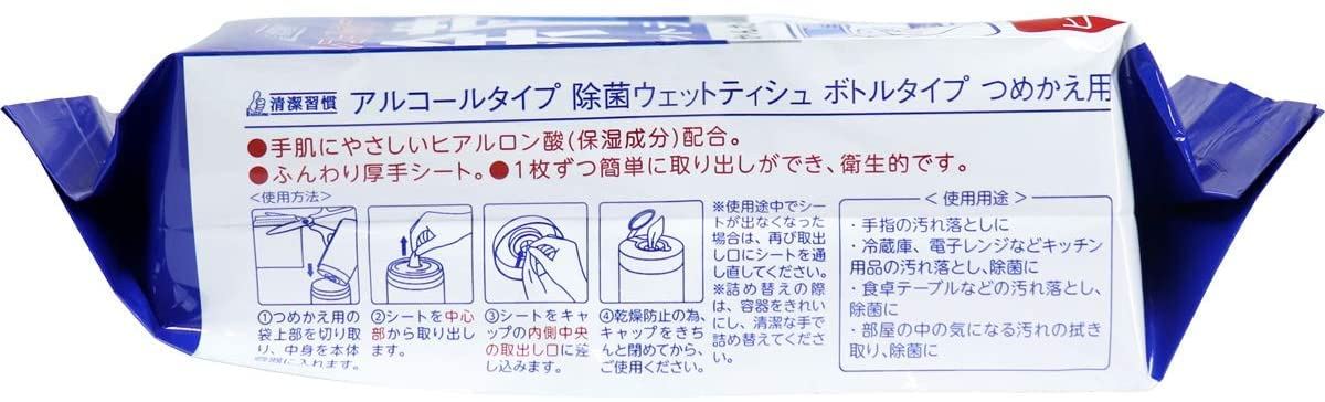 iiもの本舗 (イイモノホンポ) 【まとめ買い】清潔習慣 アルコールタイプ 除菌ウェットティッシュ 詰替用 100枚入 × 8個。