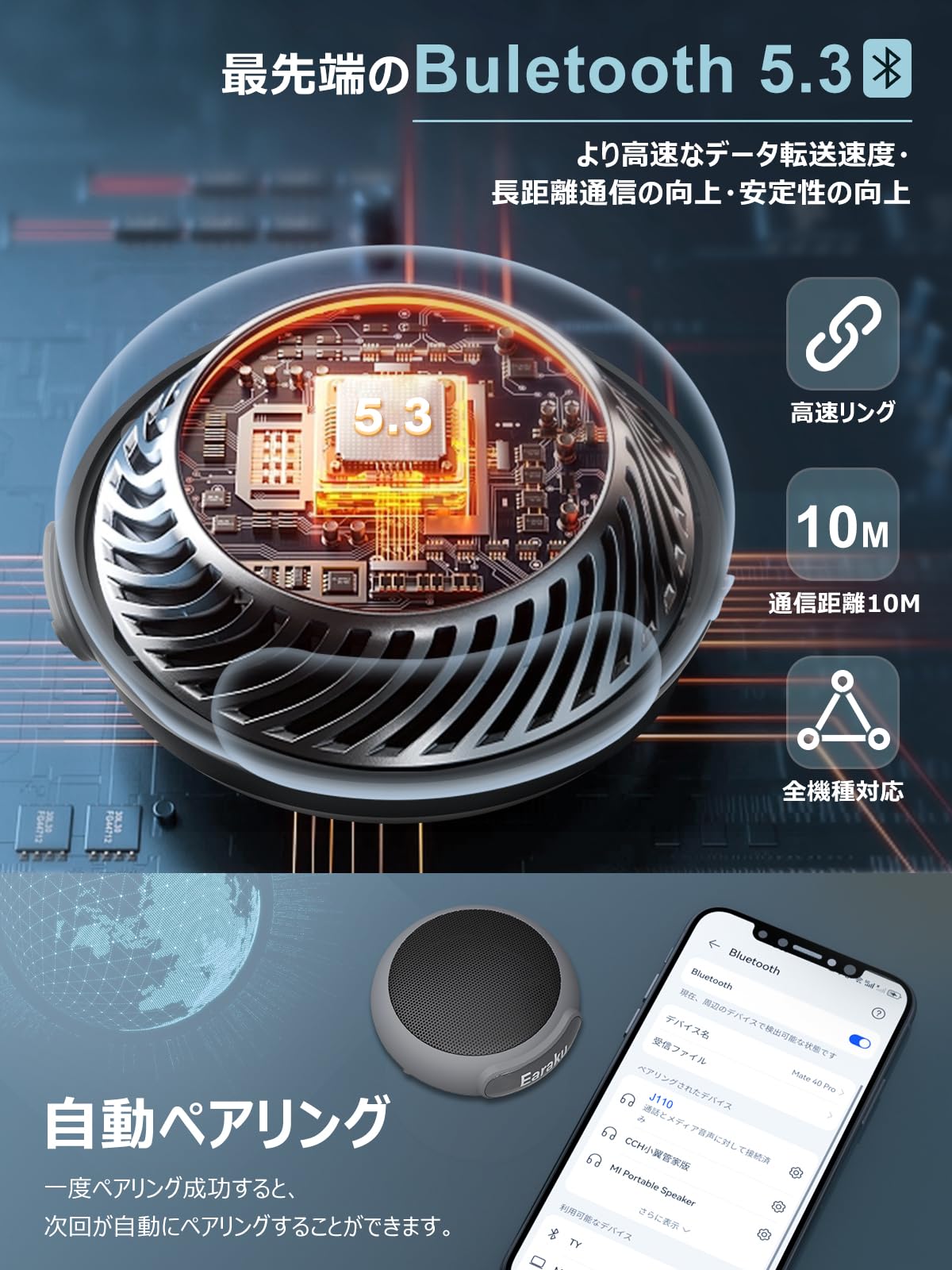 F.G.S スピーカー Bluetooth【ウェアラブル・スポーティー】 ワイヤレ IPX-6防水 ポータブル ブルートゥーススピーカー ステレオ 装着可能/マイク内蔵/Type-C充電/TWS対応/ハンズフリー通話 2台ペアリング アウトドア お風呂 キャンプ おしゃれ プレゼント。 【ウェアラブル・スポーティー】F.G.Sブルートゥーススピーカーは、他の一般的なスピーカーとは異なり、手のひらよりも小さく、わずか60グラムしかありません。 3種類の固定クリップが付属しており、クリップとスピーカーを組み合わせることで、手首に装着するだけでなく、Tシャツに付けたり、ズボンのポケットに掛けることもでき、非常に便利です。 このスピーカーは非常に優れた携帯性と実用性を持ち、さまざまな屋内および屋外のスポーツに持ち運ぶのに最適です。 運動を楽しみながら音楽の素晴らしさを存分に楽しむことができます。 【心酔させ高音質・長時間連続再生】小さい体で3Wのドライバーを搭載しており、音のバランスがよく臨場感あふれる空間を生み出します。 優れた低音域と中音域を実現し、独立したツイーターは明瞭でクリアーな高音域を再現します。 スポーツ中にも最高の音楽を楽しめます。 250mAhバッテリー搭載、フル充電まで約1.5時間がかかります。 先端の省電力技術によって、1回のフル充電で約最大9.5時間の連続再生が可能です。 ※連続再生時間は音量の大きさによって異なる場合があります。 【最先端のBluetooth5.3・TWS機能対応】F.G.SのスピーカーはBluetooth5.3チープを採用、従来のBluetooth5.0チップより高速なBluetooth接続とより安定的な接続範囲を提供します。 低遅延でストレスのない体験を提供し、高音質かつ安定した音声伝送を実現します。 スマホ(iPhone & Android)、iPadや他のすべてのBluetoothデバイスに簡単に接続できます。 また、TWS機能にも対応しております。 二台のをF.G.S スピーカーを連動させば、より広がりのあるステレオサウンドを実現、臨場感あふれるサウンドをワイヤレスで楽しめます。 さらに、内蔵マイクでハンズフリー通話にも対応します。 【IPX-6防水・様々なシーンで活躍】IPX-6優れた防水仕様と充電口の防水キャップ設計により、雨や汗、水しぶきによる水濡れを心配することなく音楽を楽しめます。 場所や場面を問わずいつでもどこでも安心してご使用いただけます。 室内ルーム、急な雨、お風呂、庭、海辺、プールパーティーなどのアウトドアにも活躍しています。 ぜひ、ご自身のライフスタイルに合わせてご活用ください。 【ホワイトノイズ機能・豊かなパッケージ内容】F.G.Sのスピーカーは、睡眠補助のためのホワイトノイズ機能が搭載されており、17種類のホワイトノイズメロディが内蔵されています。 ホワイトノイズは自然からの贈り物であり、いつでもどこでもリラックスできる環境を作り上げ、騒がしい環境の干渉から遠ざかり、ひとときの静寂と平穏を楽しむことができます。 パッケージ内容:スピーカー本体*1、ウェアラブル腕バンド*1、フックなしのクリップ*1、フック付きのクリップ*1、充電ケーブル*1、取扱説明書*1。 S000-K1009