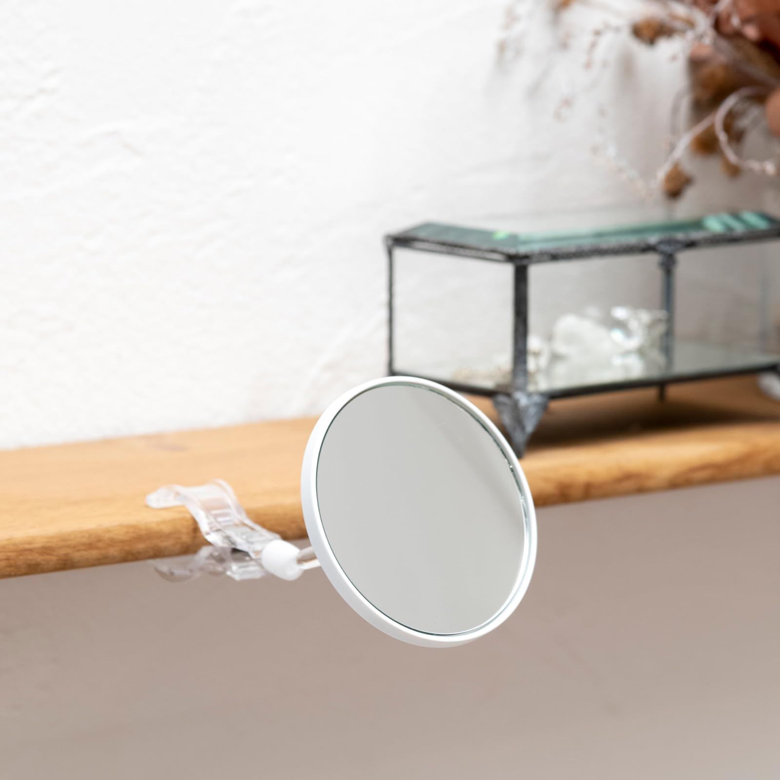 堀内鏡工業 取り付け簡単どこでも挟むだけ 3倍拡大鏡 クリップミラー 化粧鏡 メイクミラー 母の日 敬老の日 ギフト。 【3倍拡大鏡】3倍拡大鏡は細部まで大きく見えて角栓・シミ・シワなどお肌のお手入れに最適です。 視力が低い、老眼が始まった方でもアイメイク、ムダ毛処理、お肌チェックなど細かいメイクに便利です。 また、コンタクトレンズの装着の時にも役立ちます。 【取り付け簡単】普段お使いの鏡や洗面台の鏡に厚み25ミリ以内ならクリップで挟むだけ、どこでも簡単に取り付けることが出来ます。 お使いの鏡にワンプラスするだけで、普段の鏡がもっと便利な鏡に生まれ変わります。 【自在な角度・向き】ミラーを支える支柱に可動点が2点あり、ミラーを上下・左右に動かすことが出来ます。 この独自の機構により鏡を自在に動かすことができます。 全体サイズ:約95mm x 170mm x 30mm 重量:約75g。 【ギフト・贈り物に最適】ギフト・贈り物として、お誕生日、クリスマス、ホワイトデー、結婚記念日、母の日などにプレゼントとして如何でしょうか。 3倍拡大鏡クリップミラーを使えばメイクの仕上がりも一段とよくなります。 貰った方もきっと満足していただけるに違いないでしょう。 【化粧鏡一筋・安心のMade in Japan】堀内鏡工業は日本の鏡産業の中心地、大阪市平野区で1955年創業致しました。 創業以来「身だしなみを整える方へ、正しい道具を提供する」を目的に、差別化された高品質のミラーを使用し、ユニセックスでエイジレスな鏡製品を開発・製造・販売しています。 鏡に映る姿だけではなく、鏡を使っているその姿までをも美しく見せるため、日常の細かな所作や行動の研究を続けています。 万が一商品に不具合があった場合ご連絡いただければ速やかに対応させて頂きます。 S000-K9999