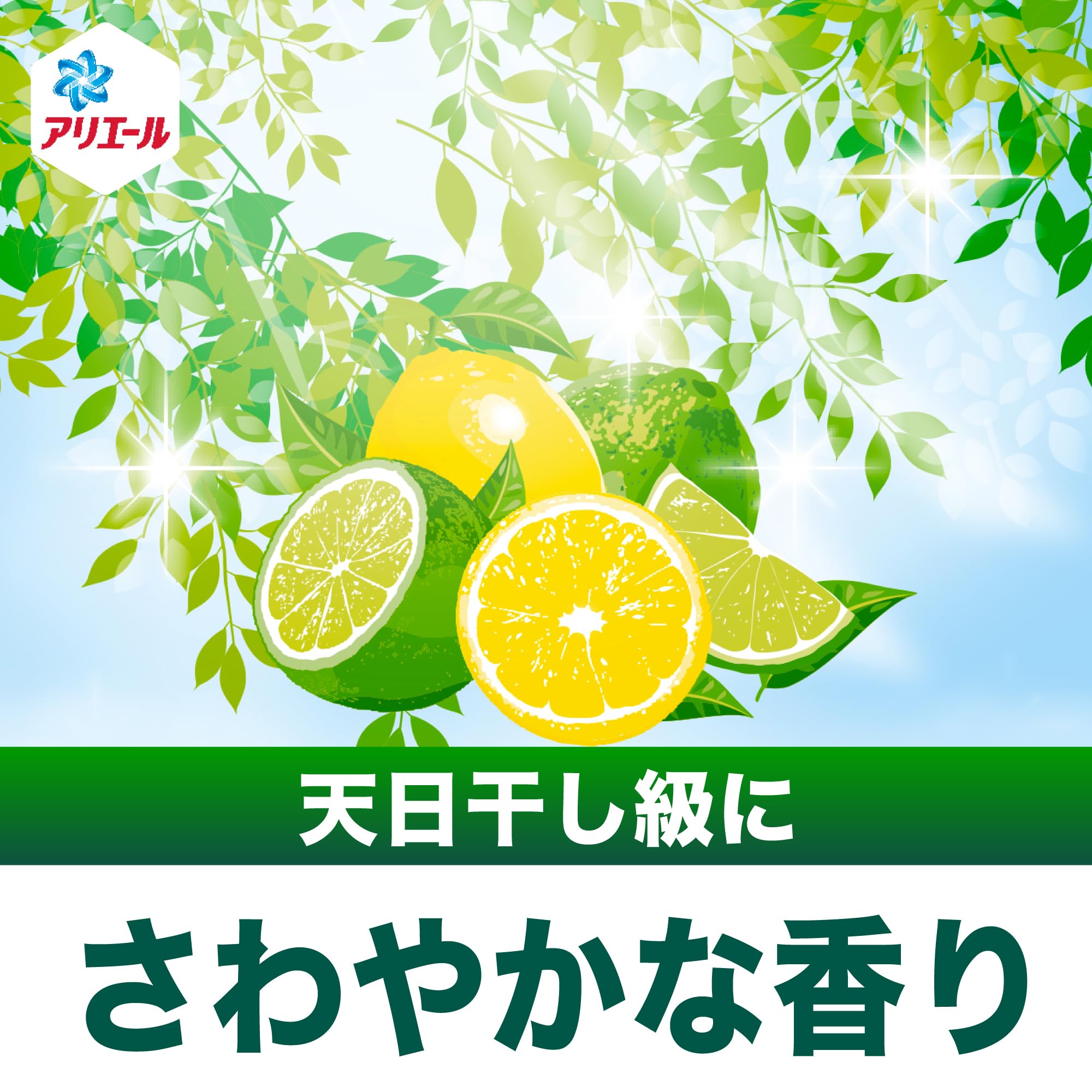 アリエール 洗濯洗剤 液体 部屋干しプラス 詰め替え 1.81kg+増量 部屋干しも生乾き臭ゼロへ [タテ・ドラム式OK]。 商品紹介 NEW 消臭成分245%にアップ *1 洗濯サイクルエンドレス消臭*2 脱ぐ瞬間までニオイ断つ!*2 部屋干しでも消臭 着ている時も消臭 脱ぐ瞬間まで消臭 厚手タオルやパーカーの生乾き臭も徹底消臭 部屋干しでも漂白剤級の抗菌力!*3 洗濯槽の防カビOK 18時間超抗菌!*4 天日干し級にさわやかな香り 縦型・ドラム式・すすぎ1回OK *1 自社アリエールジェル比 *2 P&G調べ。 ニオイの度合によりニオイ落ちは異なります。 *3 漂白剤は洗濯機直投入の条件。 全ての菌の増殖を抑えるわけではありません。 *4 全ての菌の増殖を抑えるわけではありません。 アリエール 洗濯洗剤 液体 部屋干しプラス 部屋干しも生乾き臭ゼロへ [タテ・ドラム式OK] 原材料・成分 界面活性剤(22%:ポリオキシエチレンアルキルエーテル、直鎖アルキルベンゼンスルホン酸塩)、安定化剤、分散剤、蛍光増白剤、酵素。 除湿乾燥機レベルで生乾き臭ゼロへ*。 部屋干し・夜干しでもすっきり。 *P&G調べ。 ニオイの度合いにより、落ち方の程度は異なります。 消臭成分200%アップ* *自社従来品対比。 天日干し級にさわやかな香り。 厚手タオルやパーカーの生乾き臭も徹底消臭 *P&G調べ。 ニオイの度合いにより、落ち方の程度は異なります。 洗濯槽クリーナーなしで洗濯槽防カビOK。 18時間つづく超抗菌。 *カビは除去できません。 すすぎ1回OK。 タテ・ドラム式対応。 自動投入洗濯機にも。 洗濯洗剤。 S000-K9999