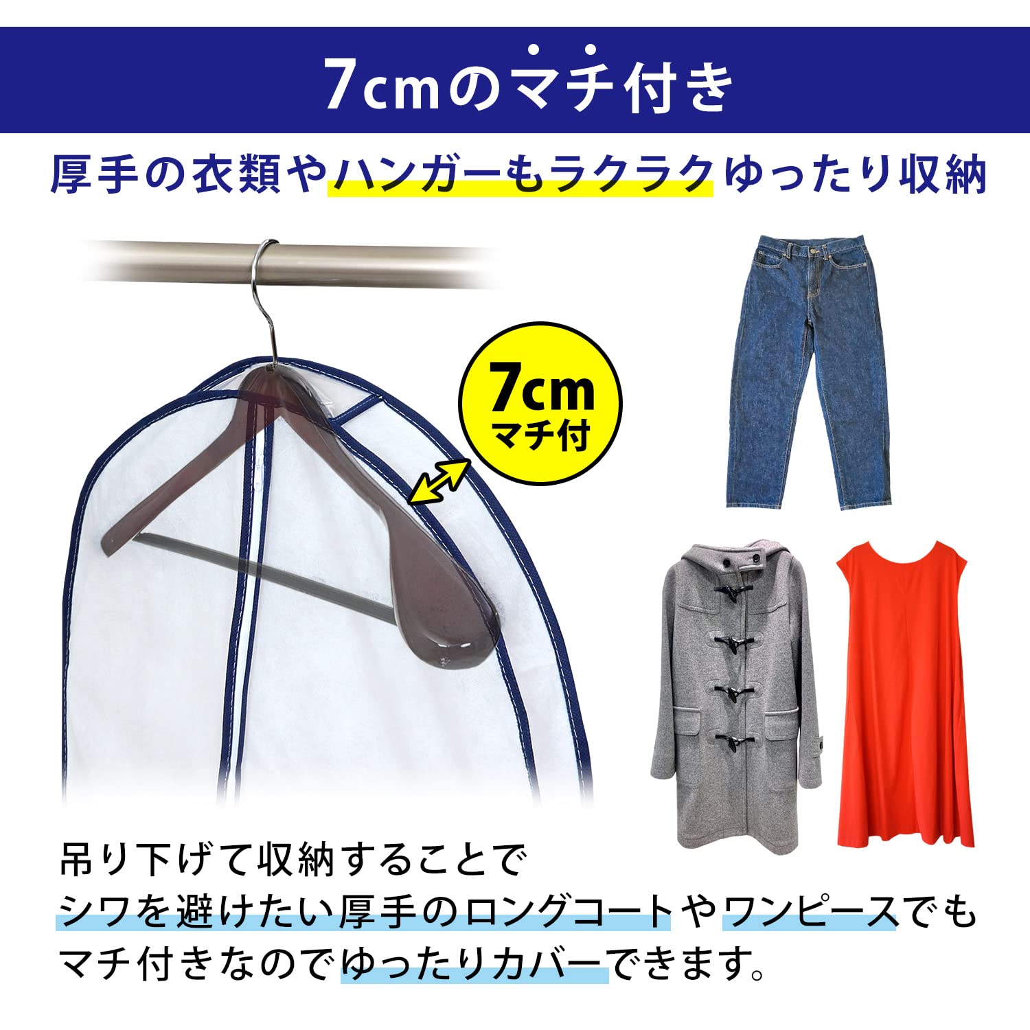 アストロ 衣類カバー マチ付きで厚手衣類対応 ロングサイズ 5枚組 吊り下げたまま使えるゆったりシワになりにくいマチ付き洋服カバー 通気性の良い不織布がホコリなどの汚れをガード 底閉じ仕様で舞い上がるホコリやダニなども防ぐ 防虫剤ポケット 透明窓 センターファスナー コートカバー 衣装カバー 吊り下げ収納 ホワイト 110-49。 商品名:マチ付ロング用カバー 5枚組 サイズ:約幅60×長さ140×マチ7cm カラー:ホワイト 内容:5枚 材質:ポリプロピレン・ポリエチレン 【特長】 シワをつけたくない大切な衣類を吊り下げたままホコリや汚れから守る衣類カバー。 マチ付きで厚手の衣類の収納もでき太いハンガーも通せる。 通気性に優れた不織布製。 不織布は通気性が良く湿気やにおいがこもりにくい収納に適した素材。 下部を縫って閉じているので全方位カバー。 舞い上がるホコリ(ハウスダスト)やダニなどもしっかりシャットアウト。 大きく開いて出し入れしやすいセンターファスナー。 ハンガーに掛けたまま衣類の出し入れができる。 中身の見える透明窓と防虫剤用ポケット付き。 透明の防虫剤用ポケットなので取り替えサインが一目で分かる。 ネームホルダーとして中の衣類のメモを入れてもOK。 ロングコートやワンピース、ドレス、礼服・喪服などの保管に。 【ASTRO CO., LTD】 1970年の創業以来、アストロは不織布(ふしょくふ)のパイオニアとして、 不織布製の収納用品や生活に役立つさまざまな生活雑貨を企画、開発、製造、販売しているメーカーです。 サプライチェーン管理を自社で行っており、臨機応変にお客さまのご要望に対応させていただきます。 アストロはこれからも皆さまの日々の暮らしに寄り添いながら、暮らしをもっと豊かに、楽しく便利にする商品を作り続けます。 【商品仕様】:サイズ/約幅60×長さ140×マチ7cm、カラー/ホワイト、内容/5枚、材質/ポリプロピレン・ポリエチレン。 【マチ付きでゆったり・シワになりにくい】:シワをつけたくない大切な衣類を吊り下げたままホコリや汚れから守る衣類カバー。 マチ付きで厚手の衣類の収納もでき太いハンガーも通せる。 【通気性が良く収納に適している不織布製】:通気性に優れた不織布製。 不織布は通気性が良く湿気やにおいがこもりにくい収納に適した素材。 【下部(底)閉じ仕様なので全方位をカバー】:下部を縫って閉じているので全方位カバー。 舞い上がるホコリ(ハウスダスト)やダニなどもしっかりシャットアウト。 【センターファスナー・透明窓・防虫剤入れ】:大きく開いて出し入れしやすいセンターファスナー。 ハンガーに掛けたまま衣類の出し入れができる。 中身の見える透明窓と防虫剤用ポケット付き。 透明の防虫剤用ポケットなので取り替えサインが一目で分かる。 ネームホルダーとして中の衣類のメモを入れてもOK。 S000-K1007
