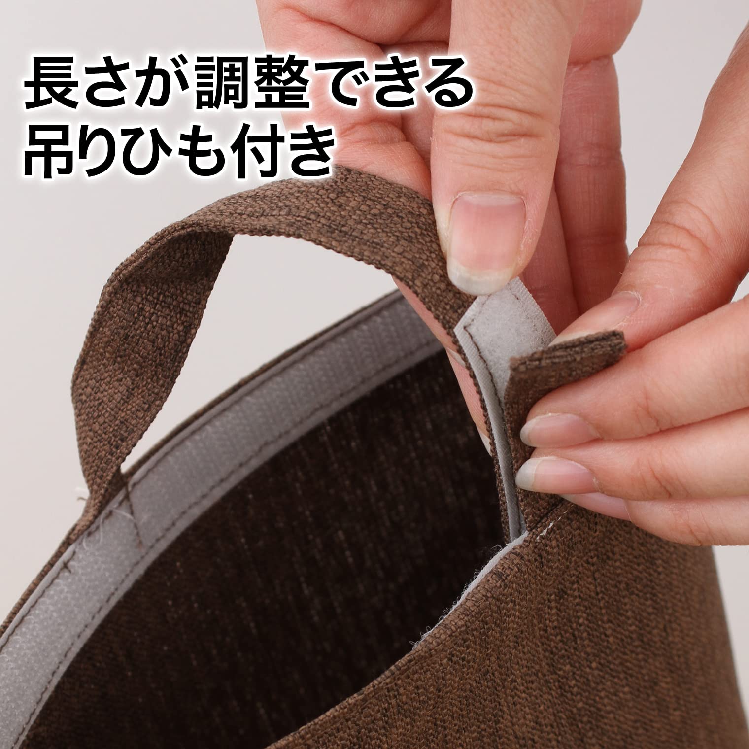 サンベルム(Sanbelm) ペーパータオル ティッシュ ホルダー ケース 壁掛け 吊り下げ はっ水 ブラウン Pally Pally ペーパータオルケース L11810 19×0.5×32cm。 ティッシュもペーパータオルも取り出しやすい、大きな取り出し口のホルダー。 長さの調節ができる吊りひも付きで、洗面所やキッチンなどに掛けて使えます。 置いて使う際、吊りひもはケース内部に収納できます。 生地にははっ水加工が施されているので水回りでも安心。 箱・袋サイズ約23×12×8cmまでのティッシュやキッチンペーパーに使えます。 [サイズ]約19×0.5×32cm[素材・材質]ポリエステル100%[生産国]中国お洗濯の際は、色移りのおそれがありますので単品洗いをおすすめします。 また、脱色を防ぐため、漂白剤のご使用はお避け下さい。 濡れた状態で放置したり、強い摩擦をかけると色移りの原因となりますのでご注意ください。 洗った後は形を整えて陰干しし、乾燥機のご使用はお避け下さい。 お洗濯や長期使用ではっ水効果は弱まります。 ティッシュもペーパータオルも取り出しやすい、大きな取り出し口のホルダー。 [サイズ]約19×0.5×32cm。 S350-K9999