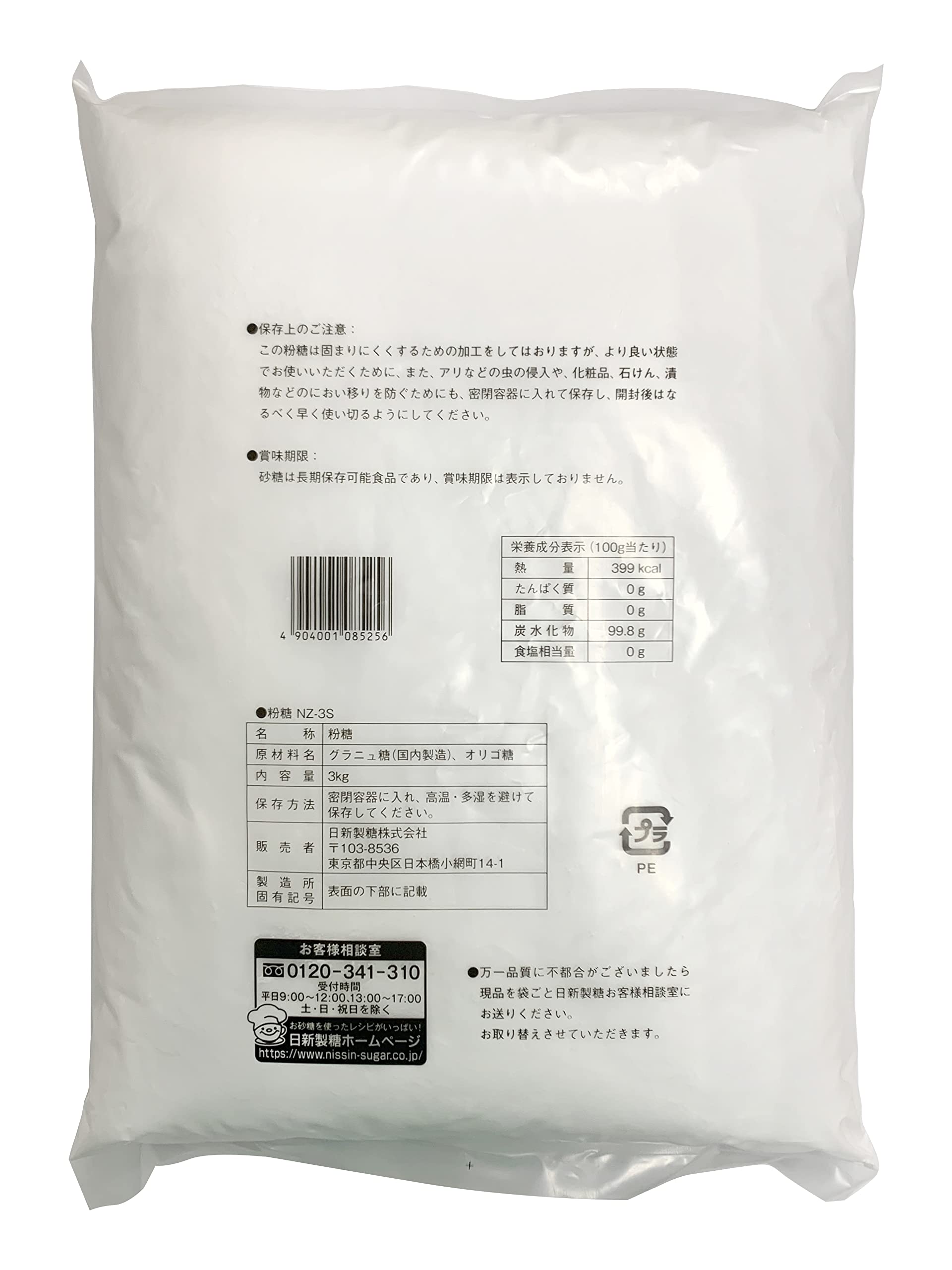 粉糖(3kg)。 商品の説明 コーンスターチを使用しない当社独自の製法でつくった粉糖です。 パウンドケーキやクッキー、洋菓子のデコレーション、チョコレート、バタークリームの練りこみなどにお使いいただけます。 原材料・成分 グラニュ糖、オリゴ糖。 コーンスターチを使用しない独自製法。 お菓子づくりに最適。 多くの洋菓子店、和菓子店、お料理教室などで採用されている定番商品です。 S600-K9999