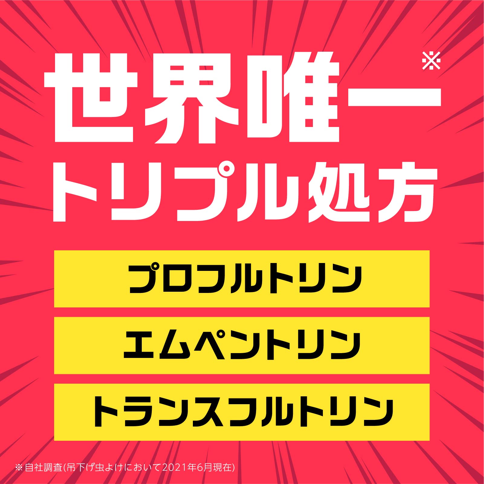 虫よけネットEX アース虫よけネット EX あみ戸用 260日用 4個入 不快害虫用 ベランダ 虫よけ 窓 玄関 むしよけ 害虫対策 屋外。 商品紹介 速く効く、広く効く、最後まで効く 【効きめの秘密】 (1)世界唯一(※自社調査:吊下げ虫よけにおいて2021年6月現在)アースだけのトリプル処方 ・3つの薬剤(プロフルトリン、エムペントリン、トランスフルトリン)で、速く効いて、最初から最後まで虫よけ効果を発揮します。 (2)マルチフィラメント構造 ・1本1本の繊維を編みこんだネット ・空気と接する面が多い ・薬剤が最初から最後まで広がり、効果を発揮 貼るだけ簡単なネットタイプ。 あみ戸に直接貼り付けることができ、ジャマにならず、風がふいても落ちにくい虫よけです。 雨にぬれても効果に影響はありません。 風向きなどにより効果は異なります。 (風上には効果はありません) 害虫が大量に発生し、次々に飛来する場合などは、駆除用エアゾールを併用してください。 全方位に広がる(効果と広がりは使用環境により異なります。 ) 無臭タイプ 4個入 ※本品は蚊を対象とした商品ではありません。 【不快害虫用】 【適用害虫】ユスリカ、チョウバエ、キノコバエ、ヌカカ 【使用期間】約260日間(使用環境により異なります) 使用上の注意 ※必要に応じて読めるよう、製品表示を保管しておくこと。 【相談すること】 万一、身体に異常を感じた場合は、本品がピレスロイド系薬剤を含む商品であることを医師に告げて、診療を受けてください。 【その他の注意】 使用前に必ず製品表示を読み、十分理解した上で使用してください。 使用方法を守り、定められた用途以外には使用しないでください。 ネット(薬剤含浸部分)に直接触れないでください。 誤って薬剤に触れた場合は、石けんでよく洗ってください。 アレルギーやかぶれなどを起こしやすい体質の人は、使用に注意してください。 火気の付近を避け、子供やペットが触れない場所に取り付けてください。 観賞魚等のいる水槽に本品が入らないようにしてください。 本品は通常260日間持続しますが、使用環境により早く終了する場合があります。 使用方法 (1)袋を開け、本体を取り出してください。 (薬剤の揮散が始まります。 )※緑色のネットに触れないでください。 また、本体から緑色のネットを取り出さないでください。 (2)お取替目安シールに使用開始日とお取替日を油性ペンで記入し、本体に貼り付けてください。 (3)本体裏側に付いている【マジックテープ】の片面をはがしてください。 (4)あみ戸の内側(室内側)に、本体の【マジックテープ】を軽く押し当ててください。 (5)あみ戸の外側(屋外側)から、使用方法(3)ではがした【マジックテープ】を本体の【マジックテープ】に重ね合わせるように押し当てて固定してください。 ※窓ガラスの開閉に支障がないように取り付けてください。 取り付け・取り外しをする人が、窓から落下しないよう注意してください。 貼り付け・取り外しの際は、あみ戸を傷つけたり、あみ戸が外れて落下しないよう注意してください。 できるだけあみ戸の高い位置で、中央に貼り付けるとより効果的です。 取り外しの際は無理に引っ張らず、あみ戸外側の【マジックテープ】をはがしてから取り外してください。 (無理に引っ張るとあみ戸を傷めるおそれがあります。 )※あみの目が細かいあみ戸では、【マジックテープ】で貼り付けられない場合があります。 イヤな虫が飛来しそうな場所に設置してください。 風量、気温などの使用環境により持続は異なります。 屋外の自然条件下にてユスリカ、ヌカカの侵入抑制効果を確認しました。 屋内での試験においてチョウバエ、キノコバエのノックダウン効果を確認しました。 【使用の目安】あみ戸に1個 【使用期間】約260日間(使用環境により異なります) ※本品は蚊を対象とした商品ではありません。 【マジックテープ】は株式会社クラレの登録商標です。 安全警告 あみ戸に直接貼り付けることができ、えジャマにならず、風がふいても落ちにくい虫よけです。 また、本体から緑色のネットを取り出さないでください。 ※本品は蚊を対象とした商品ではありません。 あみ戸に貼るだけで部屋への虫の侵入を防ぐネットタイプの虫よけ。 3つの薬剤で、速く・広く・最後まで虫よけ効果を発揮。 害虫の侵入が気になる場所、窓辺の害虫対策に。 あみ戸に直接貼り付けることができ、えジャマにならず、風がふいても落ちにくい虫よけです。 雨にぬれても効果に影響はありません。 風向きなどにより効果は異なります。 ※本品は蚊を対象とした商品ではありません。 【適用害虫】ユスリカ、チョウバエ、キノコバエ、ヌカカ。 【使用期間】約260日間 ※使用環境により異なります。 屋外の自然条件下にて行った試験に基づく。 【使用の目安】網戸に1個。 【香り】無臭タイプ。 【製造】アース製薬。 S000-K9999