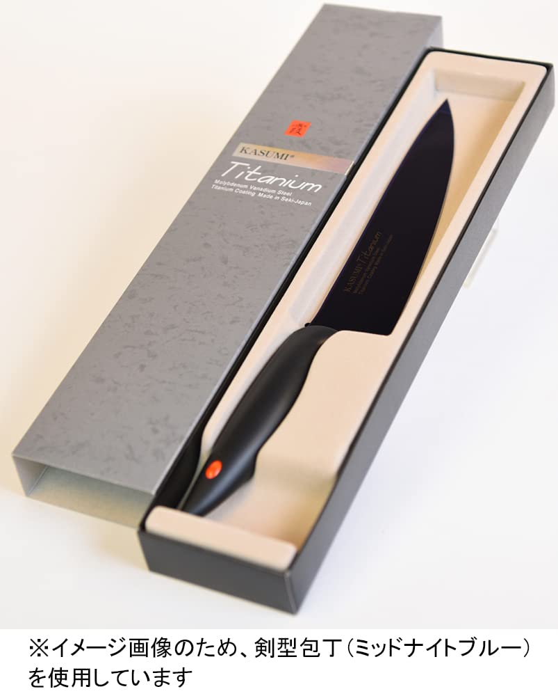 スミカマ 霞 KASUMI 包丁 チタンコーティング 剣型包丁 20cm ブルー 錆びにくい 日本製 岐阜県関市 22020/B。 商品紹介 霞(KASUMI)チタンコーティング包丁の切れ味は熟練職人の手によって一本一本丹念に仕上げられ、抜群の切れ味を実現 チタンは磨耗性にかけても優れている為、モリブデンバナジウム鋼に施してある強固でシャープな刃先をチタンと合体させることによって更に刃持ちを良くし、永切れする 2004年イギリスexcellence in house waresのThe Cutting Edge Award受賞、2006年ドイツフランクフルトAmbiente Messe DESIGN PLUS受賞 MADE IN SEKI-JAPAN 霞(KASUMI)チタンコーティング包丁の切れ味は熟練職人の手によって一本一本丹念に仕上げられ、最高の切れ味を実現 チタンは磨耗性にかけても優れている為、モリブデンバナジウム鋼に施してある強固でシャープな刃先をチタンと合体させることによって更に刃持ちを良くし、永切れする 2004年イギリスexcellence in house waresのThe Cutting Edge Award受賞、2006年ドイツフランクフルトAmbiente Messe DESIGN PLUS受賞 MADE IN SEKI-JAPAN。 メーカー型番:22020/B。 サイズ:全長/約34cm、刃渡り/約20.3cm。 本体重量:約0.125kg。 素材・材質:ポリプロピレン樹脂、モリブデンバナジウム鋼。 生産国:MADE IN SEKI-JAPAN。 S000-K9999