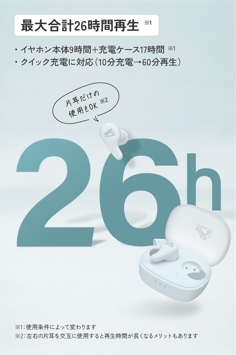 JVCケンウッド Victor HA-A22T-T ワイヤレスイヤホン Bluetooth Ver.5.4 合計26時間再生 ノイズキャンセリング マイク付き 小型 軽量 防滴 シアーデザイン モカ。 本機は、シアーなデザインが特長のノイキャン搭載ワイヤレスイヤホンです。 透け感のあるシアーなデザイン___コンパクトで丸みのあるフォルムの充電ケースはストラップ付き。 透け感のあるシアーなデザインは、ケースを開けなくても中身が見えて便利。 カラーはモカ、アイスブルー、パープル、ホワイト、ブラックの5色。 スフレマットな質感と左右非対称カーブデザイン___イヤホン本体は耳へのフィット感と、着脱するとき指でつまみやすさを両立するデザイン。 スイーツのような質感がユニークです。 いつでもクリアなサウンド___ノイズキャンセリング機能で周囲音を低減しクリアなサウンドを楽しむことができます。 施設内アナウンスを聞き逃したくないときは、ワンタッチで外音取り込み機能をオンに。 最大26時間※の長時間再生___10分の充電で最大60分※の再生が可能なクイック充電にも対応しています。 ※使用条件により変わります。 雨や水しぶきに強い___外出中の急な天候の変化時などに雨や水しぶきが飛んでも使用が可能なIPX4相当の防滴仕様。 ※JIS 保護等級4 級(IPX4)相当。 イヤホン本体のみ対応。 選べる3つのサウンドモード___好みやシチュエーションに合わせて切り替えが可能な3つのサウンドモード(FLAT/BASS/CLEAR)を搭載。 付属品___イヤーピースXS,S,M,L各2個、充電用USBケーブル、充電ケース、ロゴステッカー。 S000-K9999