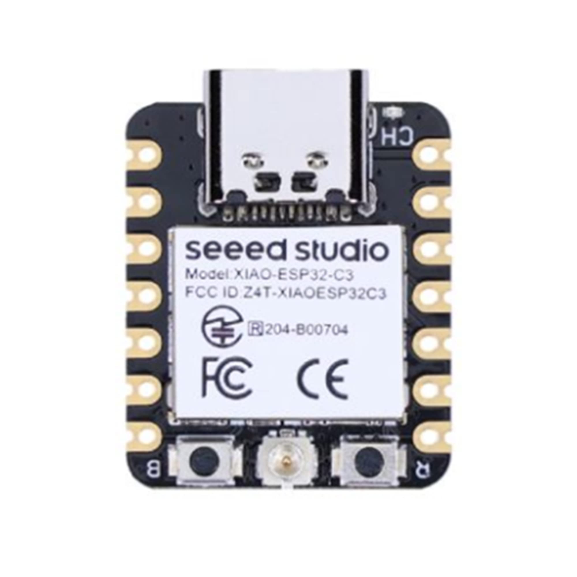 Seeeduino XIAO ESP32C3, IoT 制御シナリオ用の Wi-Fi と BLE を備えた Tiny MCU ボード (1pc)。 製品導入 ESP32C3 を備えた Studio XIAO ESP32C3 は、Bluetooth Low Energy 機能とともに完全な Wi-Fi システムを搭載しています。 その精巧なデザインと WiFi+BT 機能により、さまざまな IoT 制御シナリオや複雑な持ち運び可能なアプリケーションに最適です。 仕様 プロセッサー: -ESP32-C3 SoC 最大160 MHzで動作する4段パイプラインを備えたRISC-Vシングルコア32ビットチッププロセッサ 無線: - 完全な 2.4GHz Wi-Fi サブシステム -Bluetooth 5.0/Bluetooth メッシュ オンチップメモリ: 400KB SRAM & 4MB フラッシュ インターフェース: -1x UART、1x IIC、1x IIS、1x SPI、11x GPIO(PWM)、4x ADC -1x リセット ボタン、1x ブート ボタン 寸法:21×17.5mm 力: -回路動作電圧: 3.3V@200mA -充電電流: 50mA/100mA -入力電圧 (VIN): 5V ディープ スリープ消費電力: ディープ スリープ モデル: >44 μA Wi-Fi 対応の消費電力: -アクティブモデル: <75 mA -モデムスリープモデル: <25 mA -ライトスリープモデル: <4 mA BLE 対応の消費電力: -モデムスリープモデル: <27 mA -ライトスリープモデル: <10 mA。 優れた無線周波数性能:100 mを超えるWiFi/Bluetooth接続をサポートするPowerfulESP 32-C 3 SoCとU.FLアンテナを提供。 親指サイズ設計:外形寸法は21 x 17.5 mmで、軽くて軽い。 低消費電力:最低44μA(深睡眠モード)、4種類の動作モードがある。 車載バッテリー充電IC:バッテリー充電をサポートし、様々なウェアラブルシーンや無線モノのインターネット応用に最適。 S000-K9999