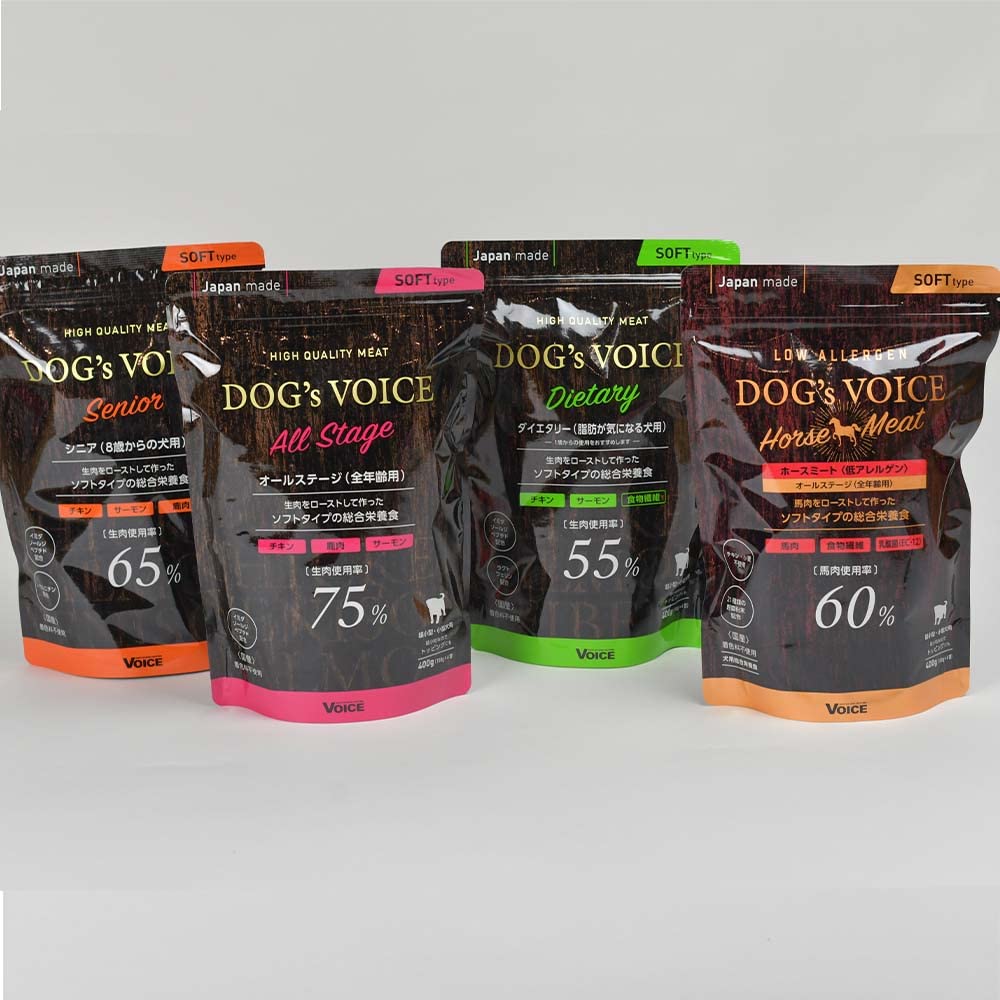 ドッグヴォイスシニア65 400g。 2023年10月1日より標準販売価格が3,278円(税込)に値上げされます。 100g x 4入 セミモイストタイプ 国産総合栄養食。 生肉成分が高く、柔らかい半生タイプなので嗜好性抜群。 食の細いわんちゃんに最適。 筋肉の健康維持にイミダゾールジペプチド配合。 代謝をケアし、エネルギー生産などもサポートするL-カルニチン配合。 S000-K9999