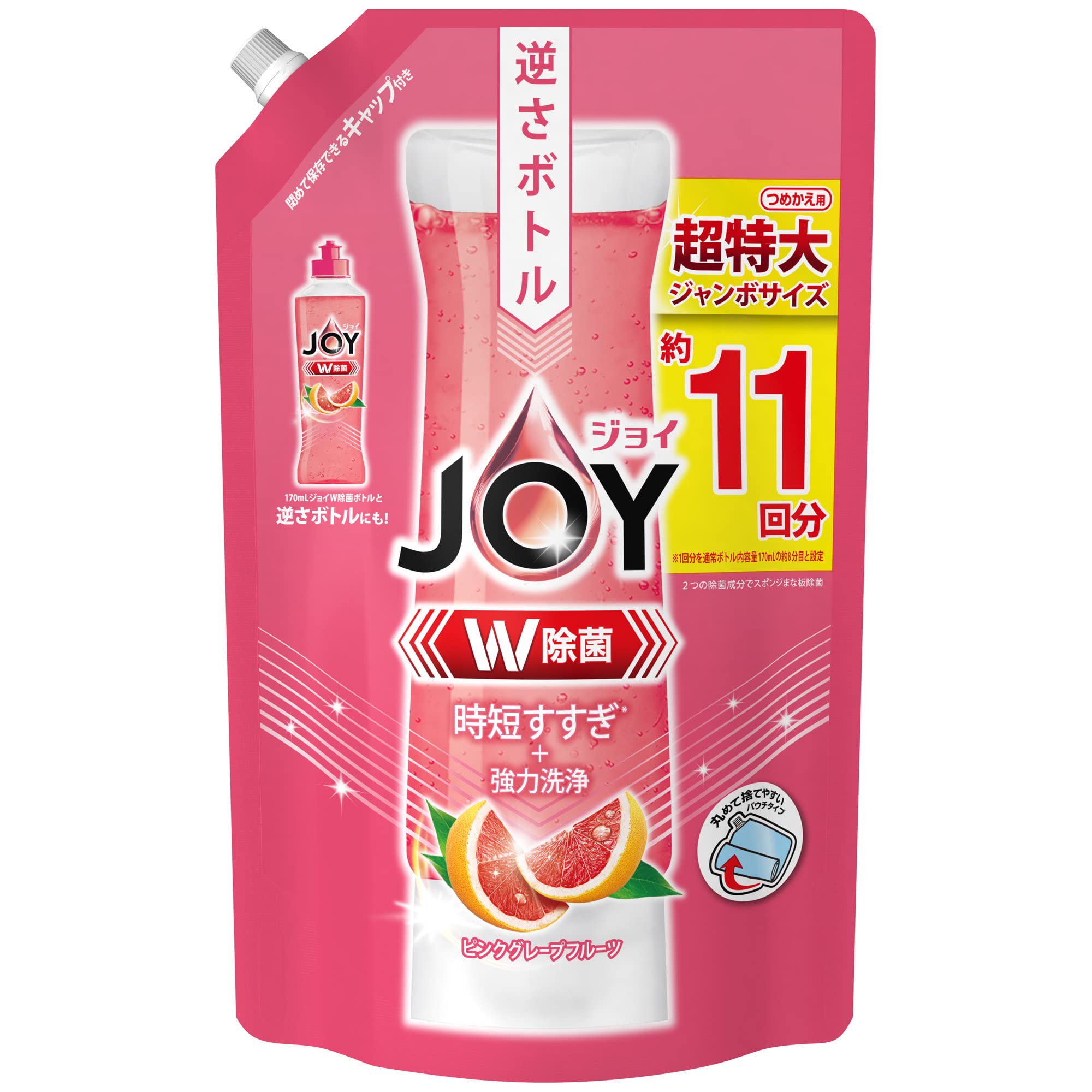 [大容量] ジョイ W除菌 食器用洗剤 ピンクグレープフルーツ 詰め替え 1,425mL。 商品サイズ (幅×奥行×高さ) :197mm×188mm×309mm。 液性:中性洗剤。 原産国:日本。 内容量:1,425ml。 2つの除菌成分でスポンジの除菌*ができます。 *全ての菌を落とすわけではありません。 S000-K9999