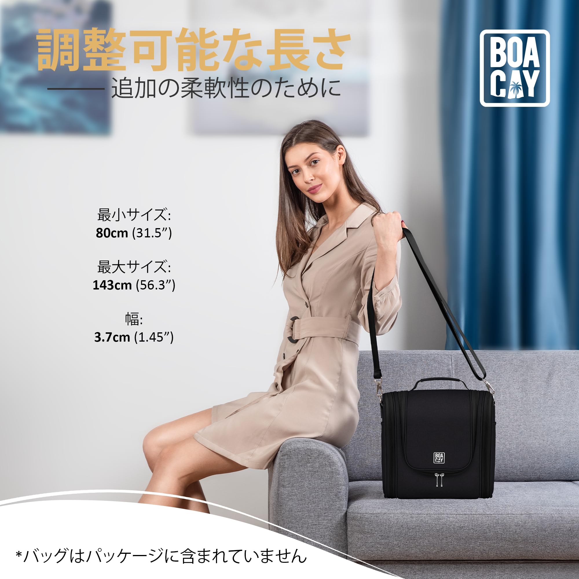 [BOACAY] クロスボディ、メッセンジャー、ダッフル、ショルダーバッグ、ハンドバッグ用幅広の交換用ショルダーストラップ - ユニバーサル、調節可能、快適 - 100% 強力なナイロン。 ショルダーストラップ:ギターバッグやメッセンジャーバッグ、ダッフルバッグ、クロスボディバッグのストラップ交換が必要なら、私たちにお任せください。 どんなスタイルにも合う、ソフトでフレキシブルなデザインのストラップです。 鮮やかな色彩と耐久性のある100%頑丈なナイロン:Boacayの調節可能なショルダーストラップでハンドバッグを新しくしましょう。 ラップトップバッグやジムバッグなど、どんなバッグにも簡単に取り付けられ、シートベルトのような心地よい触感が特徴です。 シルバーの金具と360度回転するフック:財布用クロスボディストラップは、しっかりとした金属製の取り外し可能なスイベルフックとバックルが付いており、追加の保護を施します。 幅は3.7cmであり、長さは80cmから143cmまで調節可能です。 多機能デザイン:旅行や日常使用に最適なこのユニバーサルな滑りにくいストラップは、丈夫であり、かつ十分な厚みがあるため、必需品を持ち運ぶ際に肩に負担をかけることなく、安全かつ快適に使用できます。 S350-K9999