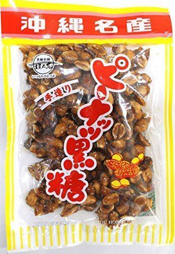 黒糖本舗 垣乃花 ピーナッツ黒糖 140g×5P。 マメ好きにはたまらない! ピーナッツに黒糖と水飴を絡めた手造りピーナッツ黒糖です。 ツヤツヤとした光沢とカリカリとした食感が特徴で、 一度食べだすと止まらなくなってしまいます。 素朴でどこか懐かしい味は、沖縄土産にも最適 【黒糖】沖縄には昔から(ニラカナイ信仰)があり、富は海のかなたからやってくるといわれています。 沖縄のサトウキビも400年前に中国からもたらされ,品種改良などを経て沖縄の風土に適した作物となり今日まで栽培されてきました沖縄で育ったサトウキビからできる黒糖は風味が豊かなことで全国的に知られています。 黒糖には様々な種類のビタミンやミネラルが含まれています。 【賞味期限】製造日より180日。 【内容量】150g×5袋。 【黒糖】沖縄には昔から(ニラカナイ信仰)があり、富は海のかなたからやってくるといわれています。 沖縄のサトウキビも400年前に中国からもたらされ,品種改良などを経て沖縄の風土に適した作物となり今日まで栽培されてきました沖縄で育ったサトウキビからできる黒糖は風味が豊かなことで全国的に知られています。 黒糖には様々な種類のビタミンやミネラルが含まれています。 【原材料】落花生、粗糖、水飴、黒糖 【栄養成分表示】(100gあたり)エネルギー:512kcal、たんぱく質:17.1g、脂質:25.8g、炭水化物:52.8g、ナトリウム:4mg(三菱化学メディエンス(株)調べ)。 【保存方法】直射日光、高温多湿を避けて保存してください。 S000-K9999