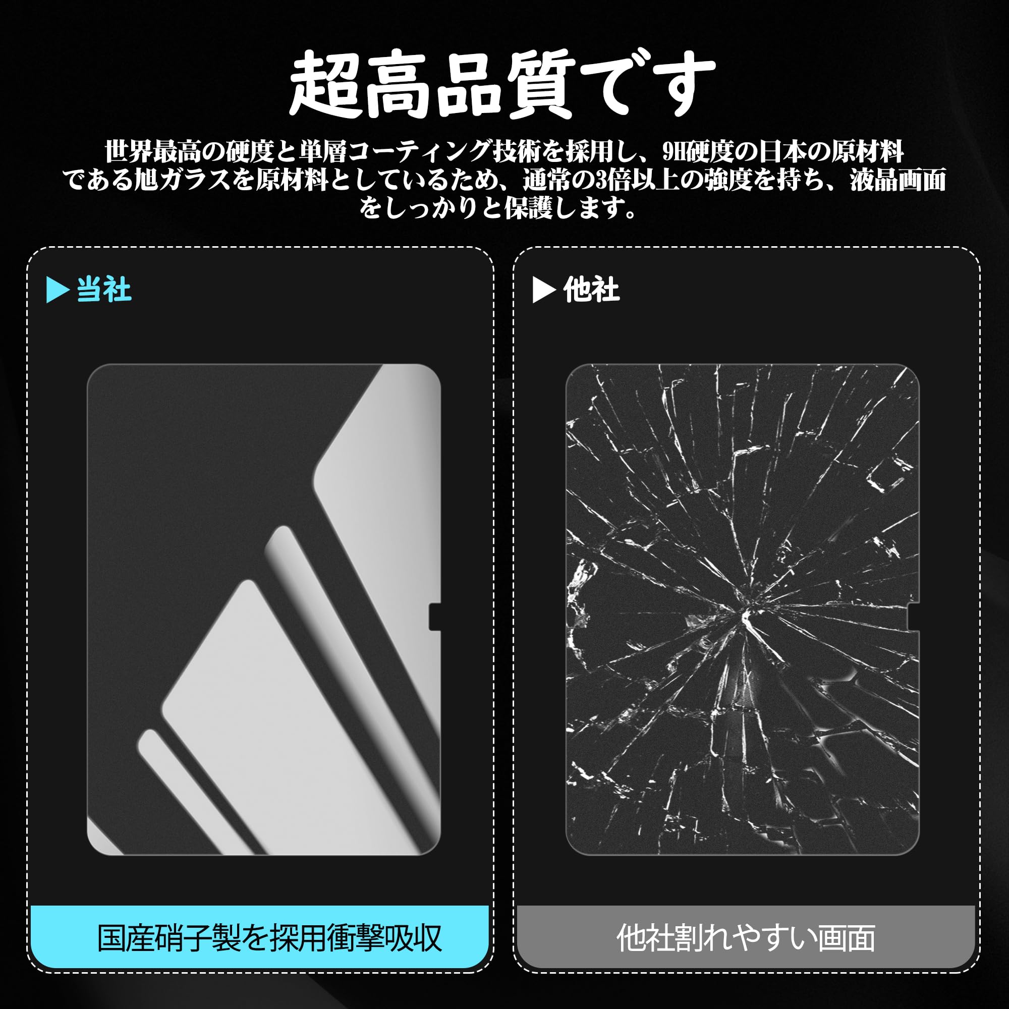 KPNS アンチグレア 日本素材製 iPad 11世代 A16 11インチ 2025 / iPad 第10世代 10.9 インチ 2022 用 さらさら ガラスフィルム サラサラ 強化ガラス 反射防止 指紋防止 指滑り ゲーム用 保護フィルム【2枚セット】ガイド枠付き。 【よくある問題】 1. 貼り付けた後、ホコリが入っる場合はどうすればいいでしょうか? 強化ガラスを割れないように一気に剥がした後に、セロハンテープや同梱のラベルシートでホコリを取り除き再度丁寧に位置を合わせながら貼って下さい。 2. 気泡が1円玉サイズで残った場合はどうすればいいでしょうか? 画面を擦っても圧着出来ない場合が多いので、 この場合は、じわじわと剥がして、 再度貼り付けるとキレイになります。 位置のズレやほこりなどが入っておらず、気泡が抜け切らない場合は貼りなおさずに5週間ほど放置していただきますと自然になくなります。 【対応機種】iPad 11世代 11インチ 2025 / iPad 第10世代 10.9 インチ 2022 用 さらさら アンチグレア ガラスフィルム。 【アンチグレア】独自の反射防止コーティング加工技術により、グレアを効果的にブロックし、画面からの眼精疲労と反射を抑えます。 目に掛かる負担を軽減できます、強い光から目を守ります。 【初心者でも綺麗に貼れる】ガイド枠を利用することで、ガラスを液晶に置くだけで自然に吸着、簡単に気泡が抜いて行くので、誰でも簡単、綺麗に貼ることができます。 フィルム貼りことが苦手の方でも簡単に貼る事が可能です。 【さらさら手触り】AG加工によりサラサラとした感触で指すべり滑らかです。 触れる面積が減るため一般的な強化ガラスと比べるとサラサラとした使用感になるのです。 ゲームが好きな方にとって最もリアルなゲーム体験を満喫いただけます。 指紋や汚れが付きにくい、触り心地もサラサラで、スワイプ操作がスムーズにできます。 【日本硝子素材を採用】国産旭硝子素材製のガラスを採用して表面硬度は9Hです。 耐衝撃性と耐傷性に優れています。 落下による衝撃を吸収することもできます。 S000-K1010
