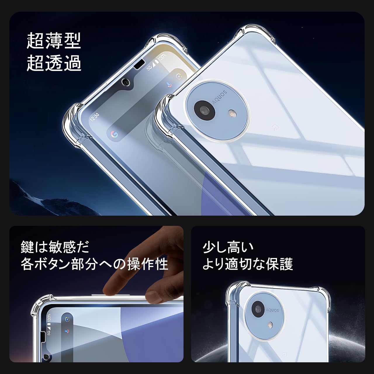 対応 Aquos wish 4 ケース クリア 黄変防止 + Aquos wish 4 SH-52E ガラスフィルム 柔軟 Aquoswish4 ケース 耐衝撃 ガラスフイルム保護付き 指紋防止 落下防止 耐衝撃 ガラスフイルム保護付き 指紋防止 落下防止 耐久性 JCJC-TPUW4。 【対応機種&パッケージの内容】Aquos wish 4 専用対応ケースです。 ガラスフィルム付きストラップホール付き、耐衝撃性、黄ばみ防止のスマホケース、便利で美しく、誰でもどんなシーンにも適しています。 対応機種を間違いないようにご購入お願い申し上げます。 パッケージの内容:ケース*1 ガラスフィルム*1 セットのインストールパッケージ*1。 【ガラスフィルム付き&操作簡単】セットの Aquos wish 4 に対応したガラスフィルム付きです。 透明度はもちろん、硬度9Hの素材は強力な保護を提供し、耐衝撃、耐落下、スクラッチ防止、より高いタッチ感度、より良い視覚体験、日常生活に最適です!油汚れ防止、指紋防止の設計で、汚れても簡単に拭くだけできれいになり直すことができて便利です。 また、フィルム自体のシリコン自己吸着層により、位置を合わせて上から軽く置くだけで、気泡が入らないように初心者でも簡単に貼り付けることができます。 【高品質素材&細部までこだわる保護】厳選されたPCとTPU素材を採用し、一般的な素材よりもさらに耐黄、耐熱、耐スクラッチ、超高い実用性と耐久性で輝き続ける Aquos wish 4 ケース です。 また、カメラレンズより1.2mm、画面より1mm高い保護設計を採用し、スマホのレンズと画面が地面に接触しないようにし、うっかり落としても衝撃を吸収し、角までしっかり保護でき、超耐衝撃性の全面保護型の Aquos wish 4 カバー です。 【軍事レベル落下保護】 落下時の衝撃を出来る限り緩衝出来るよう、四隅で衝撃を吸収する「エアクッションテクノロジー」を採用。 四つ角部分がエアクッション構造となり、本体が落下しても衝撃を和らげしっかり守ります。 携帯電話の曲線に従って高低差設計です、カメラレンズより0.8mm高めで、外部と直接接触の傷つきを避けます、本体の薄さを維持しつつ、カメラレンズもしっかり保護出来る高さで設計されています。 S000-K9999