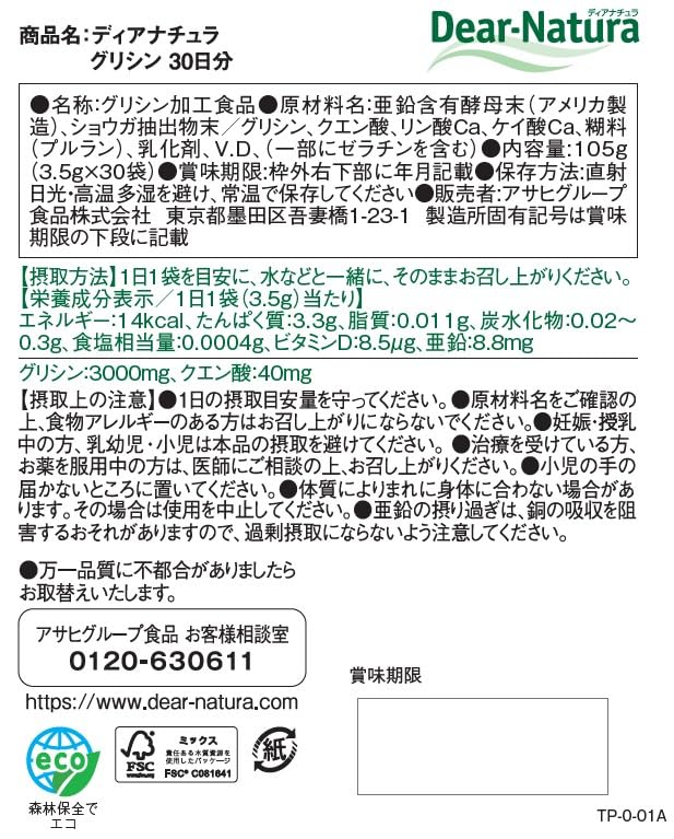 ディアナチュラ グリシン 30袋(30日分) アサヒ サプリ Dear-Natura 国内工場で生産 08/04出品