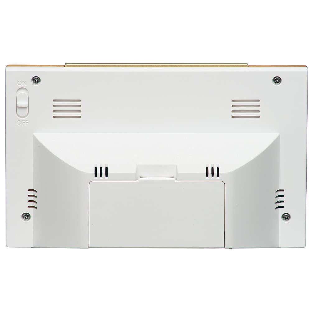 セイコークロック 目覚まし時計 電波 デジタル カレンダー 薄茶木目 91×148×47mm SQ799B 02:薄茶木目模様。 柔らかな印象の明るい木目調のフレーム。 便利な温度湿度表示付き。 記念品にも最適。 電子音 電子的に合成したアラーム音です。 簡単ダイヤル 前面のダイヤルで目覚まし時刻を設定できます。 スヌーズ アラームを止めても数分後に再び鳴り出す機能です。 ライト 小さな電球やLEDライトが文字板面を照らす機能です。 フルオートカレンダー うるう年でも修正がいらないカレンダーです。 温度 温度を表示します。 お部屋のコンディション管理に便利です。 湿度 湿度を表示します。 お部屋のコンディション管理に便利です。 アラームモニター アラーム音をアラームセット時刻以外にも聞くことができます。 付属品:電池(単3マンガン電池×2)。 電波修正機能(40kHz/60kHz自動選局・受信OFF機能つき)、電子音アラーム(ダンダントーン)。 アラームオートストップ機能(約5分間)、スヌーズ、アラームモニター機能、2099年までのフルオートカレンダー機能。 温湿度表示(温度測定範囲:0℃~40℃ 測定精度: ±2℃ 湿度測定範囲:25%RH~85%RH 測定精度:±8%(25℃)。 12時間制/24時間制切替式。 電池が必要な商品です。 S000-K9999