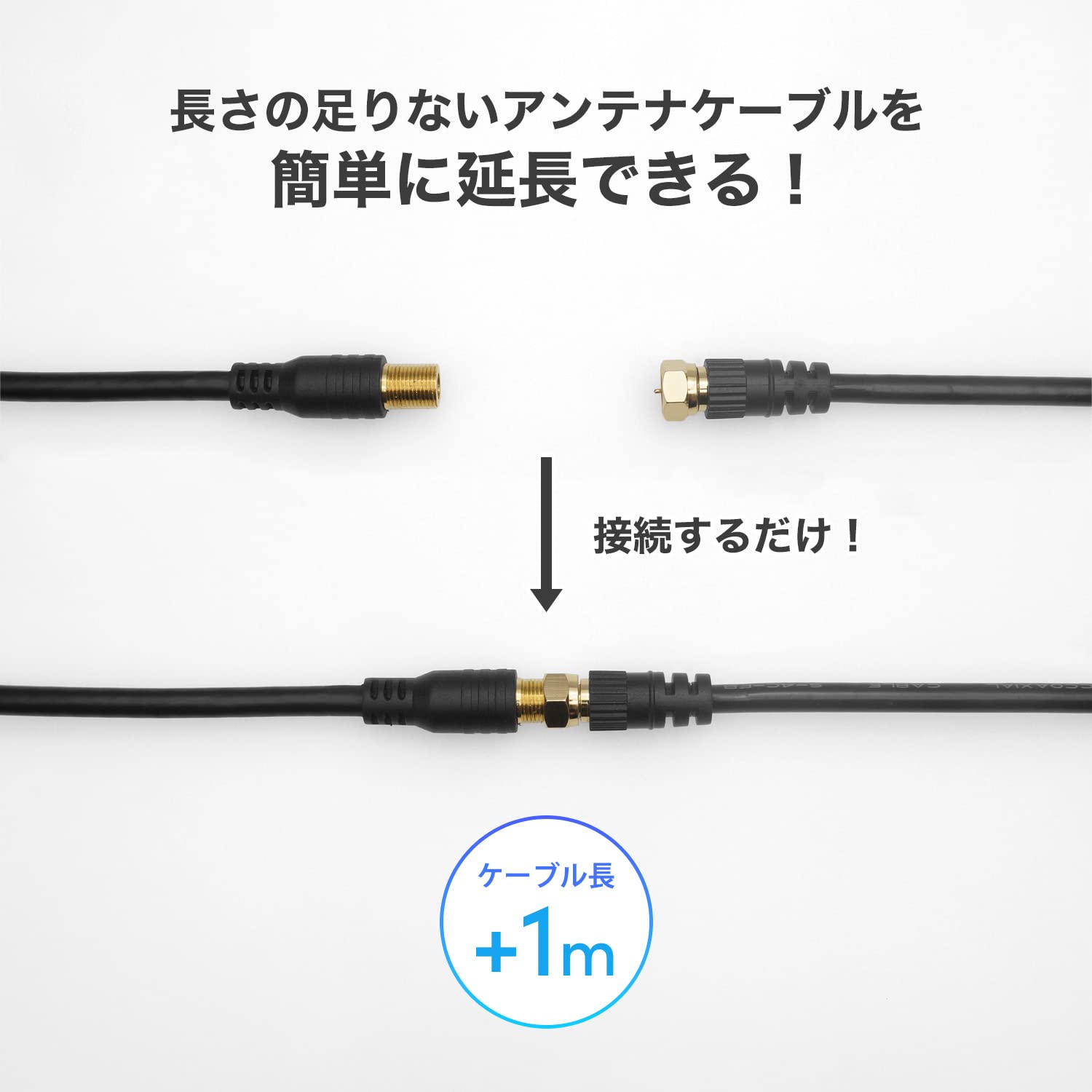 ホーリック アンテナ延長ケーブル 1m 【4K8K放送(3224MHz)/BS/CS/地デジ/CATV 対応】 ブラック F型接栓メス/ネジ式コネクタ ACF10-670BK。 取り付けるだけで簡単にアンテナケーブルの延長ができます "長さが少し足りない"そんな時に お部屋のレイアウト変更やテレビの買い替えなどで、長さが足りなくなってしまったアンテナケーブルを本製品で延長することが可能です。 4K/8K衛星放送対応 従来の地デジ、BS、CS放送に加えて、最新の4K/8K放送にも対応しています。 簡単&便利なコネクタ形状 F型接栓メスは、テレビなどの接続端子と同形状のため、お持ちのアンテナケーブルと簡単に接続が可能です。 もう一方には、機器などとしっかり接続ができるネジ式コネクタを採用しています。 幅広い周波数帯域で安定した伝送が可能なS-4C-FB規格を採用 信号が劣化しにくい両端子金メッキ仕様。 ケーブル規格:S-4C-FB コネクタ規格:F型。 コネクタ形状:ネジ式-F型接栓メス(金メッキ仕様)<br>コネクタサイズ:<br>・F型接栓メス:W約13.4 x H約13.4 x D約42mm<br>・ネジ式:W約12.5 x H約12.5 x D約32.75 mm。 インピーダンス:75Ω<br>ケーブル直径:6mm。 ケーブル長:1m。 S000-K9999