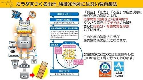 無添加だし 飲む出汁 カラダをつくる出汁 (5g×20本入り)×3個セット。 いつでもどこでも気軽に飲める顆粒スティックタイプ。 スティック1本(5g入)で必要なアミノ酸20種すべて摂れる。 原料は国産のイワシ、カツオ、昆布、無臭ニンニクを使用しております。 イワシやカツオは頭から骨、内臓、目玉まで全て使用し、化学処理を一切加えずにアミノ酸を低分子状態のペプチドにしました。 「真空」「圧力」「ろ過」の自然現象に 学ぶ独自の製法により、化学物質(溶剤など)を使用せずタンパク質をペプチド状に分解。 さらに脂肪分・有害物質を除去しています。 コップ1杯(約200cc)のお湯にスティック1本溶かせばホットドリンクとしてお飲み頂けます。 ペプチドなので、カラダに負担をかけず効率よく栄養を吸収。 アレルギー28品目や食塩、酵母エキス等の添加物は一切不使用の為、お子様からお年寄りや療治中の方まで幅広く安心安全にご利用頂けます。 料理研究家監修のレシピも掲載しておりますので、贈り物として受け取ったお客様にもご好評をいただいております。 【内容量】(5g入×20本)×3個セット。 【原材料】食物繊維(国内製造)、カツオ(鹿児島・高知)、イワシ(山口・九州全域)、無臭ニンニク(山口)、昆布(利尻・羅臼・日高)。 【お召し上がり方】1本(5g)を200ccのお湯で溶かしてそのまま飲んでください。 味噌汁・うどん・煮物・おでん・鍋物・炊き込みごはんのだしとして、野菜炒め・チャーハン・パスタなどの炒め物にも振り入れてもお使いいただけます。 玉子焼きや茶碗蒸し・ドレッシング・合わせ酢にも。 【お召し上がり方】1本(5g)を200ccのお湯で溶かしてそのまま飲んでください。 味噌汁・うどん・煮物・おでん・鍋物・炊き込みごはんのだしとして、野菜炒め・チャーハン・パスタなどの炒め物にも振り入れてもお使いいただけます。 玉子焼きや茶碗蒸し・ドレッシング・合わせ酢にも。 S000-K9999