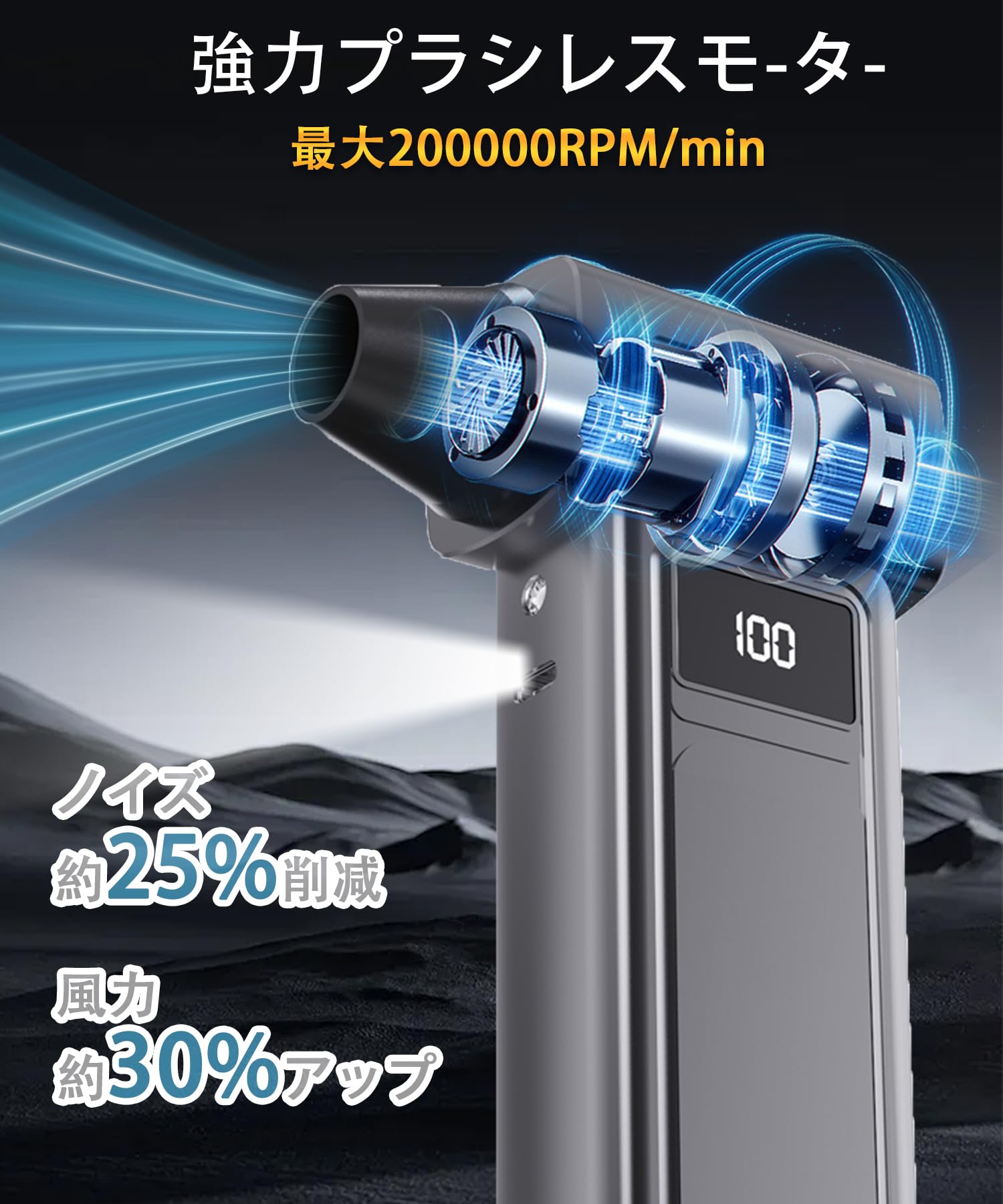 CCDBD エアダスター ブロワー 電動エアダスター ハンディ掃除機 超強力200000RMP高速回転 無段階風量調整 8000mAh 電動エアダスター Type-C充電式 小型 3種類ノズル付き PC掃除/キーボード/家具/車内/エアコン/洗車用 収納ボックス付き 日本語取扱説明書付き。 【76m/sの超高速性】新しい強力なブラシレスモーター技術を採用し、風速は76メートル/秒に達します。 最高回転速度は200000RPMで。 落ち葉の掃除はもちろん、砂ぼこりや水、雪を吹き飛ばすのにも便利です。 細かい隙間にある砂や水は、ホウキで掃ききれず残ってしまいがちですが、ブロワーを使用すれば一瞬で吹き飛ばすことができます。 駐車場のアスファルトの細かい隙間、玄関のタイル、窓のサッシなどの清掃も効率的に行えます。 ※注意:デバイスを使用する際は、適切な充電および使用方法に従ってください。 操作中にデバイスが熱くなるのは正常なことです、慌てないでください、一定時間使用を一時停止して、正常な温度に戻すことができます。 過充電を避け、デバイスを高温または低温に長時間さらさないでください。 【4段階風速調節&小型軽量】風量は利用シーンに合わせてお好みの強さに調整出来る4段階調整可能のエアダスターです。 約260g、手のひらサイズで、片手でも持ちやすいながら、超強噴射でホコリを楽々吹き飛ばせる電動エアダスターです。 見た目だけでなく妥協のない追求された操作性にもこだわります。 小型で軽量ながらパワフルなので、ホコリがたまりやすい場所の掃除に活躍します。 【エアダスター&ハンディ掃除機】エアダスターは多機能を持っています、エアダスターが動作するとき、LED照明が正面にオブジェクトを照らすことができ、より効率的かつ便利なクリーニング。 また、送風機能だけでなく、フーバー機能も備えています。 強力モーターを採用し、軽量・コンパクトでありながら強力な吸引力を実現しました。 隙間のゴミも逃さず、しっかり吸い取ることができます。 ダストカップとフィルターは簡単に取り外すことができるため、集めたゴミはさっと捨てられます。 詳しくは日本語のマニュアルを参照してください。 【8000mAh大容量バッテリー・安全安心】従来4000mAh容量電池と比べて、TVVTO電動エアダスターはバッテリー容量2倍以上!フル充電しなら、最大約120分で使用できます。 インテリジェントで効率的なバッテリー過熱保護。 製品には温度保護システムが搭載されており、一定の温度を超えると自動的に停止する仕組みになっています。 これにより、過熱やその他の問題を防ぎますので、安心してご使用いただけます。 ※使用中の注意事項:使用前、ファンにホコリや他の異物が詰まっていないかを確認してください。 S000-K9999
