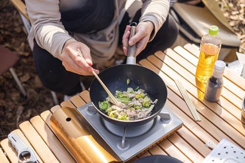スケーター(Skater) アウトドア用 取っ手の取れる 中華鍋 23cm フタ 収納袋付 シーズニング不要 空焚き不要 キャンプ用フライパン かの地から アウトドア用中華鍋 IRCN1-A。 キャンプに最適ハンドルが取り外しできるアウトドア中華鍋 キャンプ、アウトドア用本格鉄製フライパン フタも鉄製でへこみを持たせしっかり中華鍋にはまり、上に炭を置きダッチオーブン風に使えます 本体・ハンドルそてぞれ収納袋付き 底の部分を平らにして安定感を持たせました サイズ23cmで持ち運びに便利、ソロキャンプにおすすめ 使い始めの空焼き不要です フックピンを回して引くとハンドルが外せコンパクト収納が可能 鍋本体に目盛付 大きさ的に1~2人前ができる お手入れ保管は取り扱い説明書を確認、保管してください。 サイズ:中華鍋φ23cm 板厚1.4mm。 素材・材質:本体フタ鉄 ハンドル天然木 ステンレス。 満水容量:2.5L。 表面加工:窒素処理。 S000-K9999